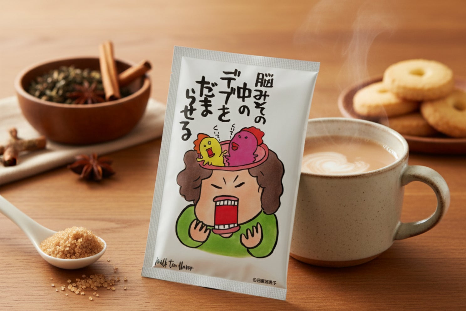 個包装の一つ一つのパッケージに、ここでしか読めない描き下ろしの1コマ漫画が1話ずつ、全14種類デザインされています。毎朝、先生の漫画でクスっと笑いながらプロテインを飲む。共感と笑いで、辛いだけのトレーニングとは違う、「楽しいから続く」新しい体験をお届けします。