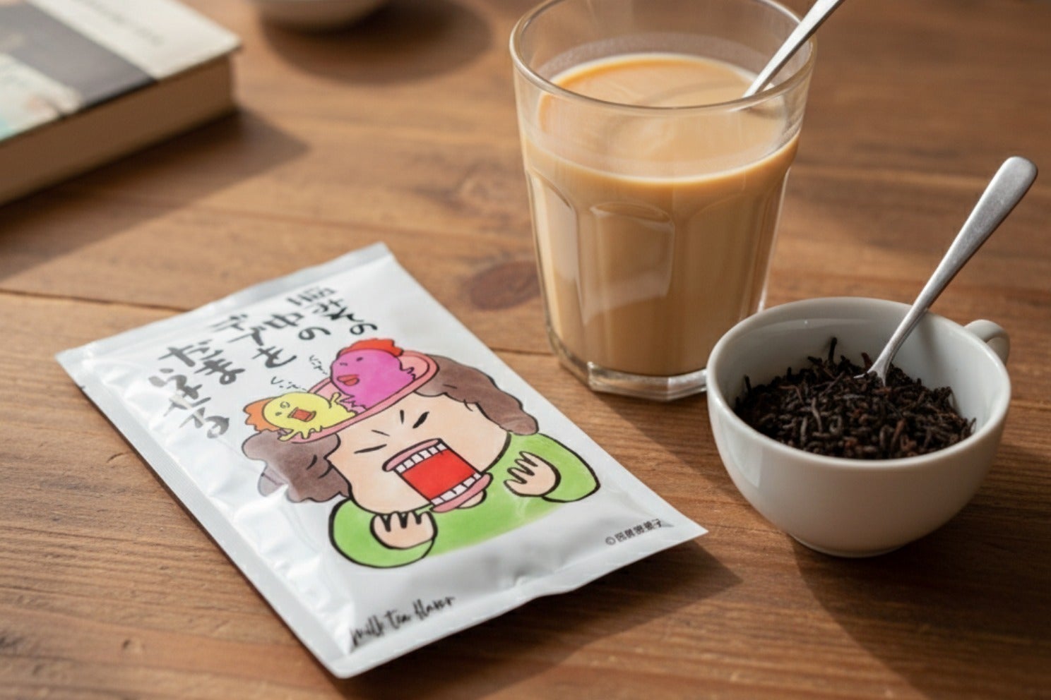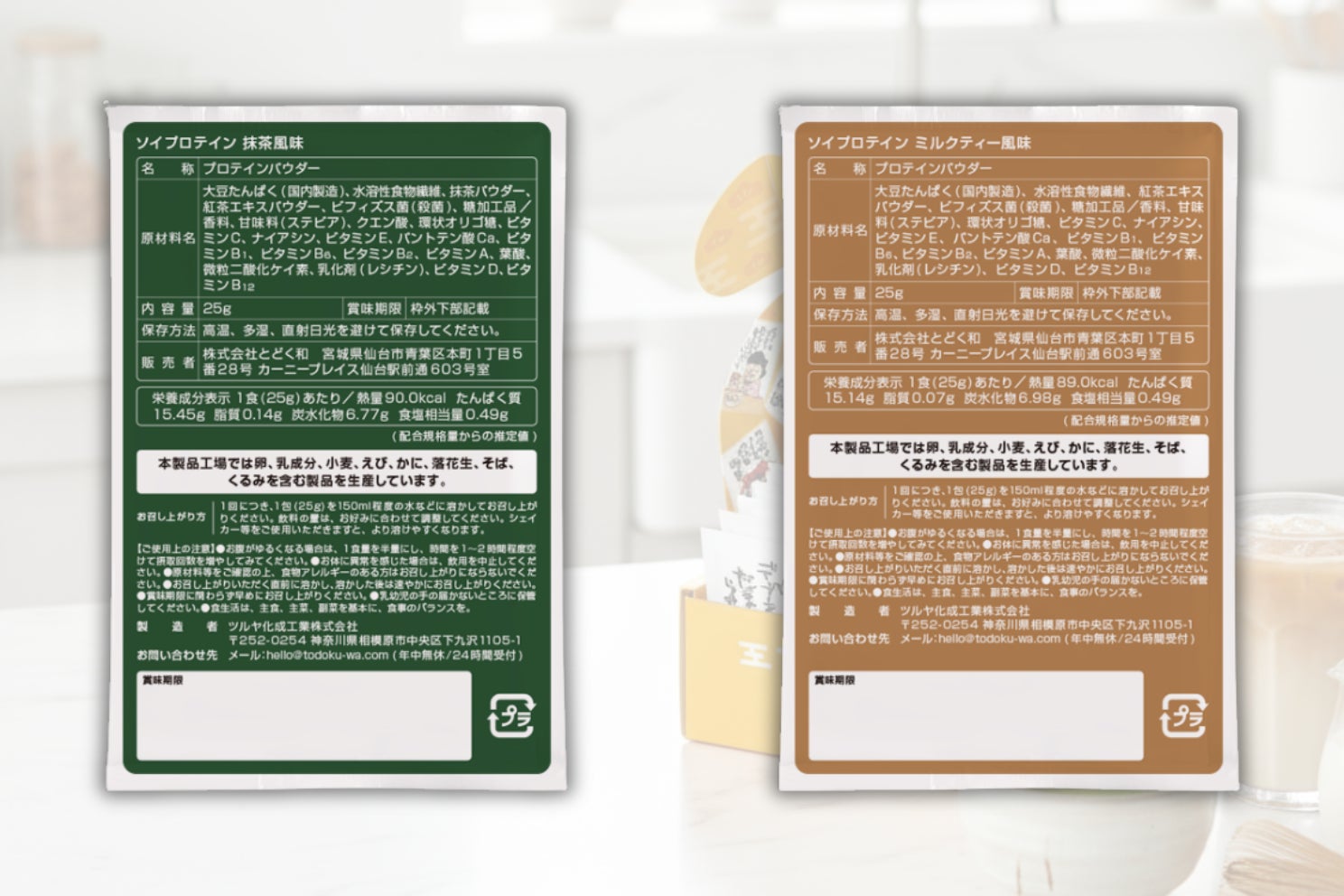 A:フレーバーは「抹茶風味」と「ミルクティー風味」の2種類をご用意しました。どちらも西原先生と試飲を行い、毎日飲んでも飽きない、ホッと一息つけるような自然でやさしい甘さに仕上げています。甘味料には植物由来のステビアを使用しています。