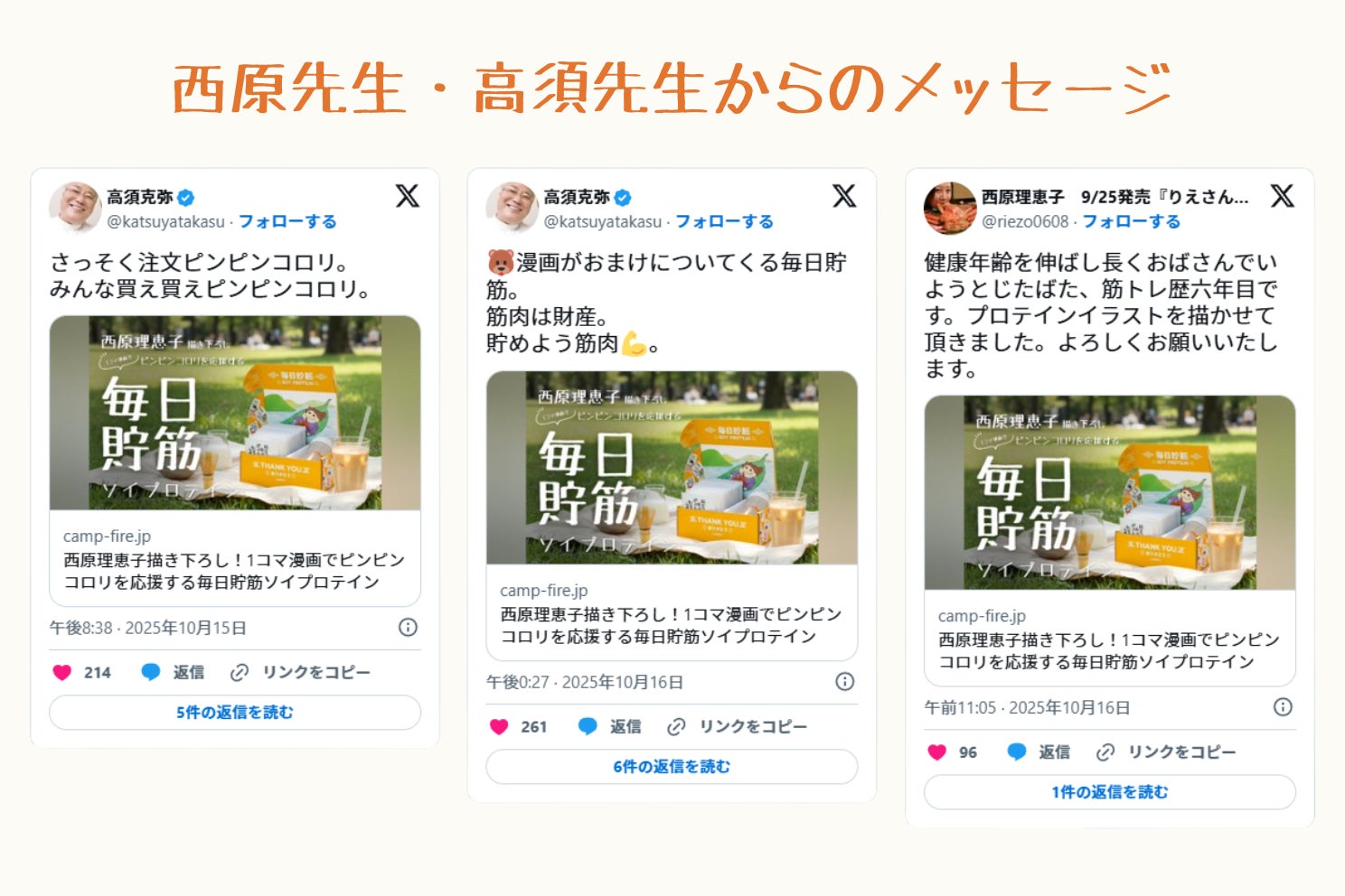 西原先生と高須先生からの投稿により、私たちのプロジェクトは初速から大きな勢いをいただき、現在223%達成という結果につながっています。心より感謝申し上げます!