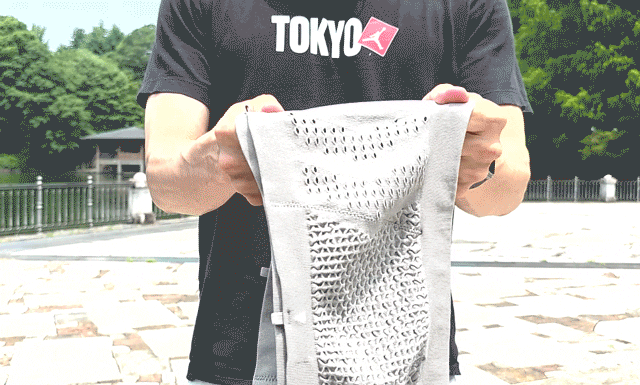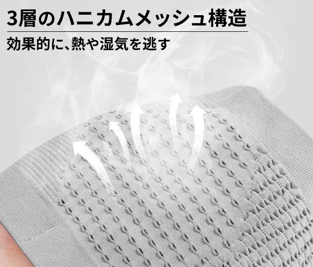 さらに、3層構造の立体ハニカムメッシュを採用。身体との接触面に空気の通り道をつくることで、ムレや熱のこもりを抑え、長時間のランニングやアクティビティでも快適さをキープ。クッション性にも優れ、揺れやズレを軽減します。