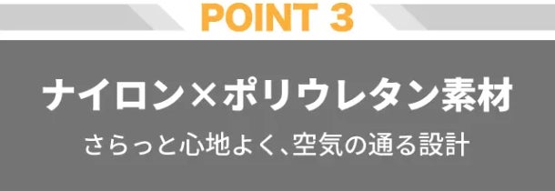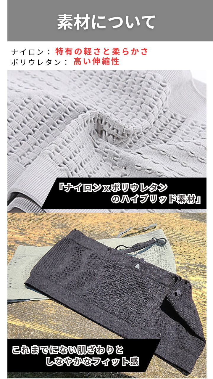 ランベルト アドバンスに使用されている素材は、ナイロンとポリウレタンのハイブリッド素材。軽量でしなやかなナイロンに、優れた伸縮性をもつポリウレタンを加えることで、動きにしっかりフィットしながらも締めつけ感が少なく、着け心地の良さを実現しています。
