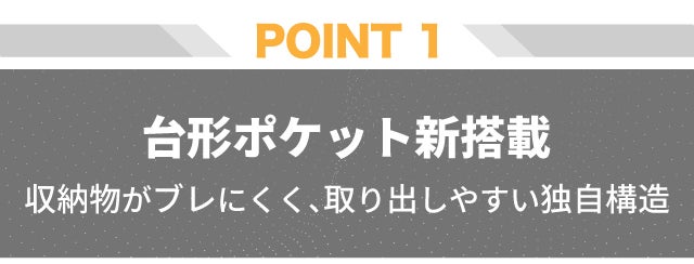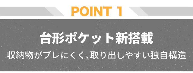 そんな悩みを解消するべく、ランベルト アドバンスは収納時の“重心の安定化”に着目し、開口部が広く、底に向かって狭くなる台形構造を新たに採用。収納物が自然とポケットの底に収まり、重さが下方向へ流れることで重心が安定。これにより、揺れにくく、ズレにくい理想的な収納環境を実現しました。