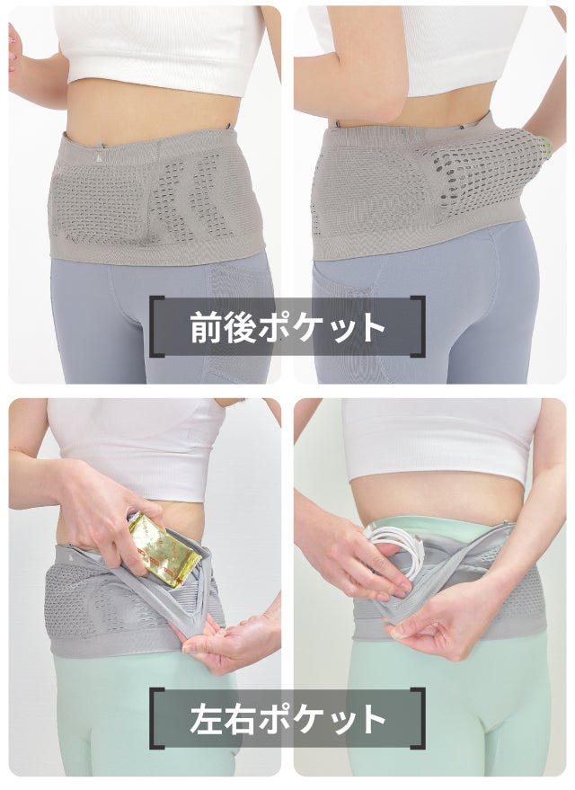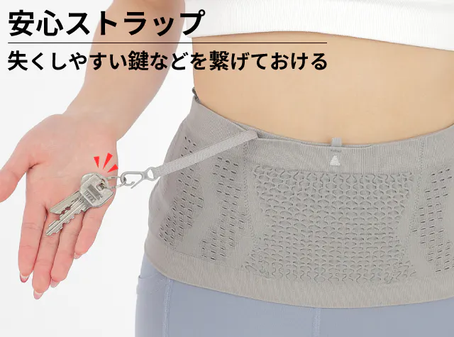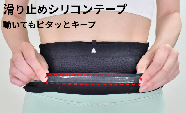 この設計により、圧力が一箇所に集中せず、心地よくフィット。走ってもズレにくく、長時間の装着でも腰への負担が少ないため、運動中に「位置の調整ばかりしてしまう」「締めつけが苦しい」といった悩みを大幅に軽減します。