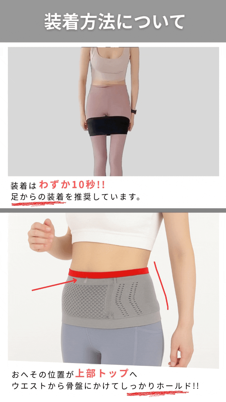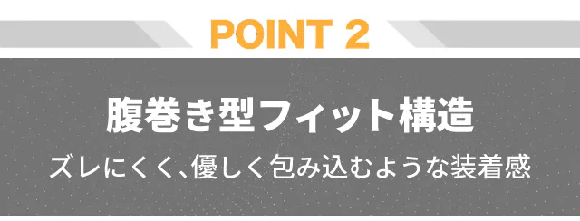 ランベルト アドバンスは、一般的な細いベルト式とは異なり、ウエスト全体を「面」で包み込む“腹巻き型フィット構造”を採用。