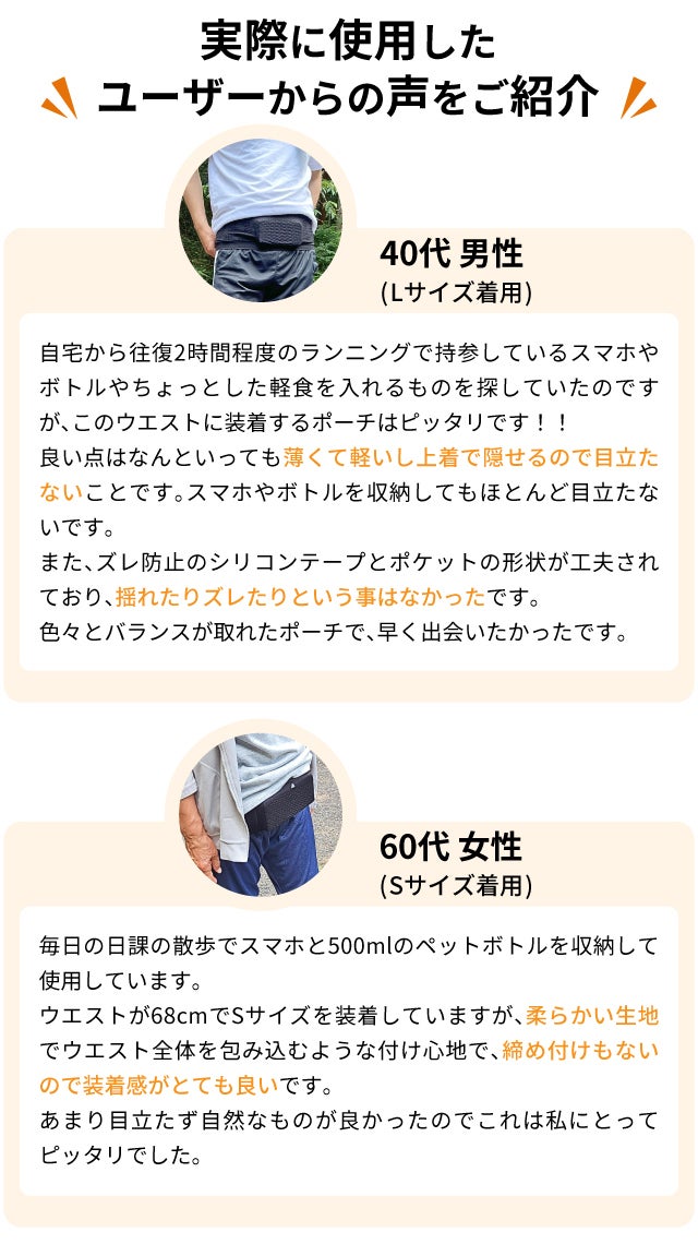 私自身も毎日のウォーキングやランニングで使用していますが、手ぶらで動ける自由さや身体にしっかりフィットする感覚は、従来の製品にはなかった体験です。