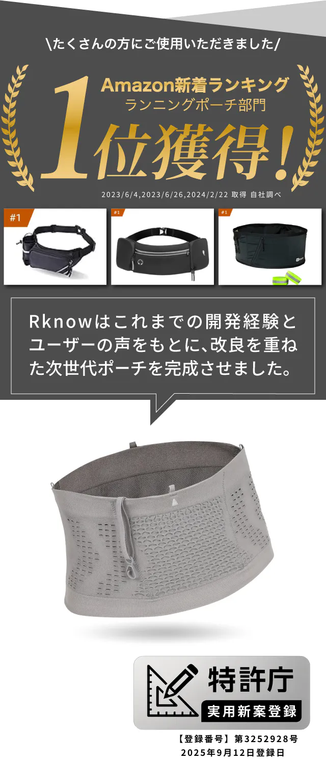 本製品は、**Rknow(アールノウ)**が正規販売を行う腹巻き型ランニングポーチです。製造・配送には万全を期しておりますが、以下の点をご理解の上でご支援をお願いいたします。