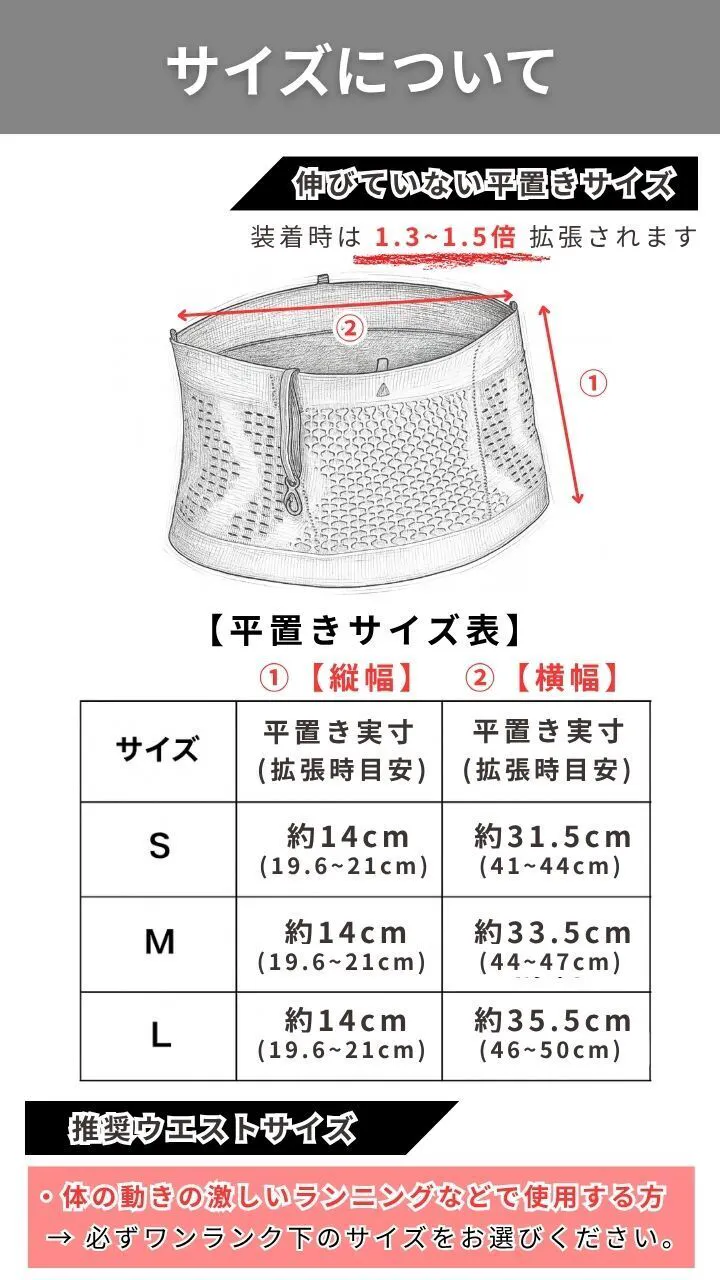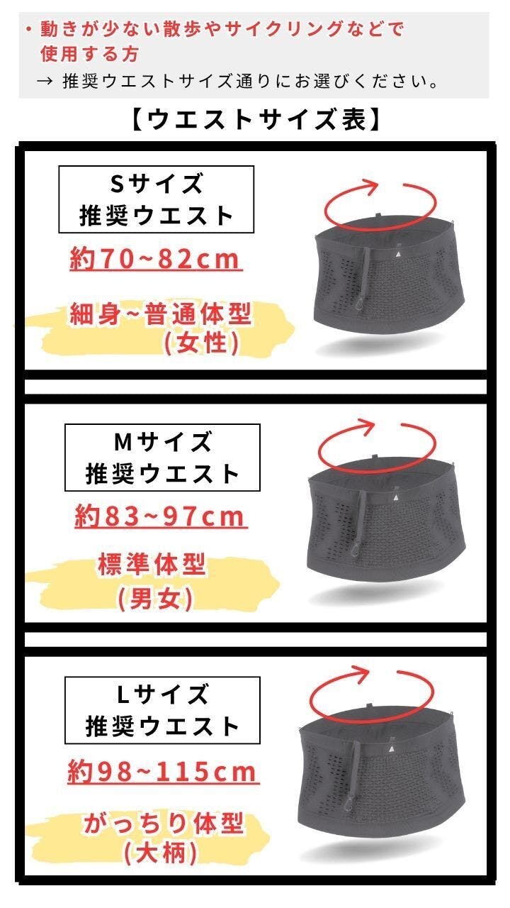 ※(例)ウエスト95cmでランニング使用の場合はSサイズをお選びください。