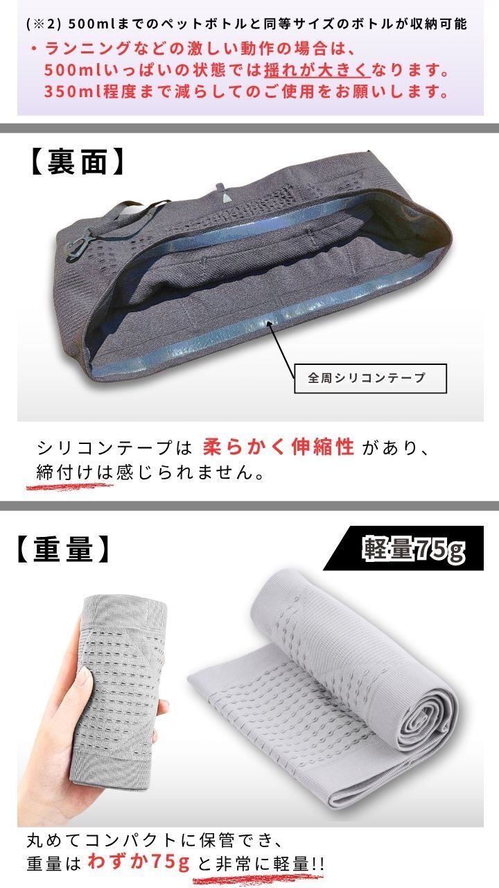 A.はい、当社独自の「台形ポケット構造」により、体に密着させて収納できるため、揺れやズレを大幅に軽減します。※500mlに関しては容量の調整が必要となります。