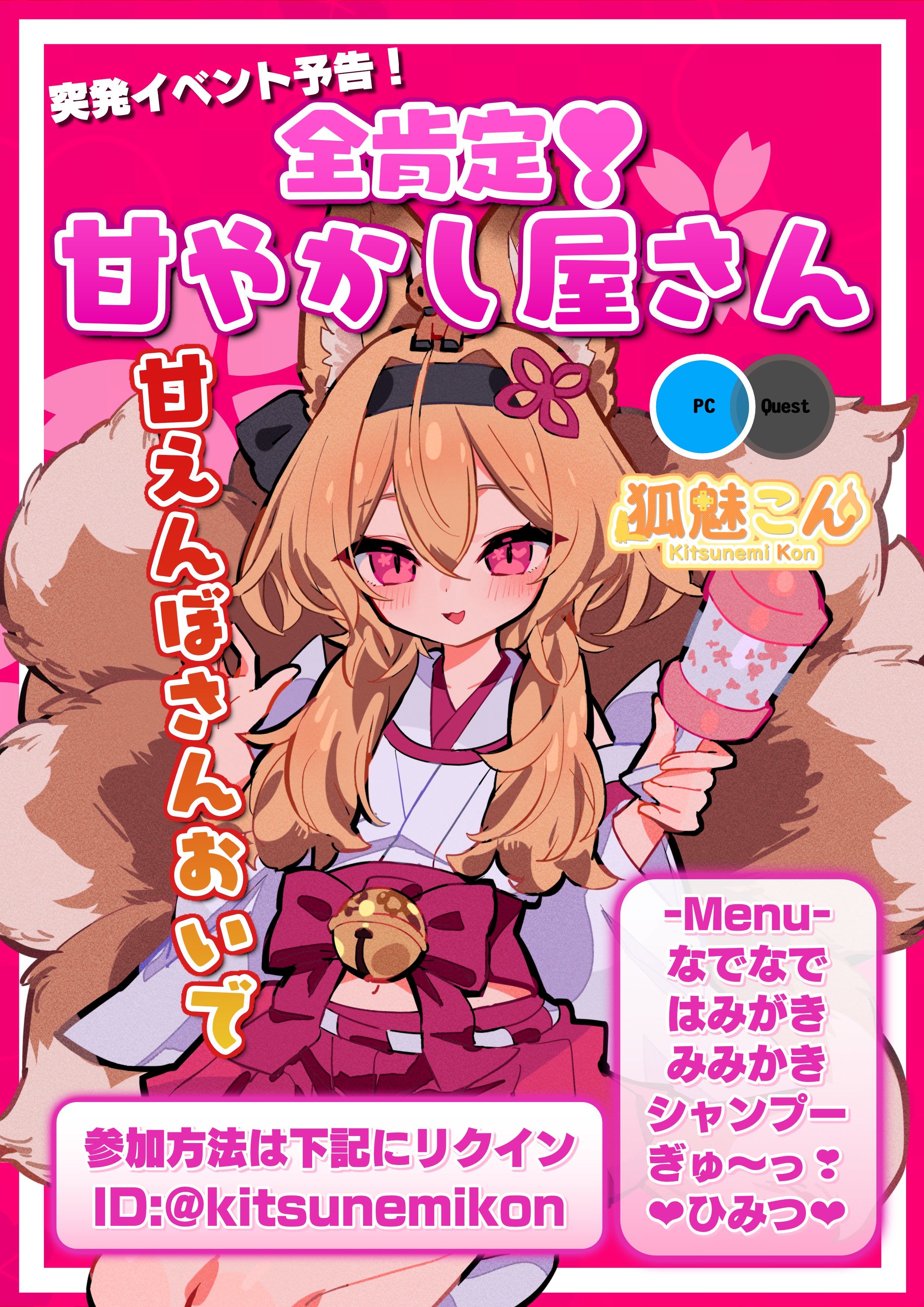 VRChat内で実施する「バーチャルアイドル 狐魅こん 1on1イベント」の招待券です。
