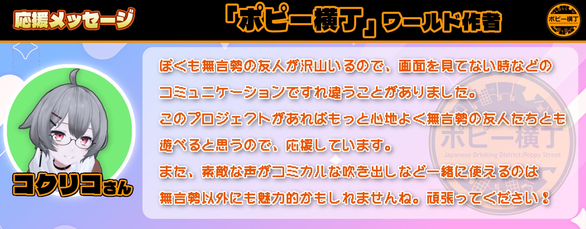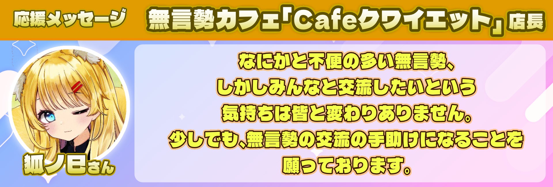 まずは様々な事情で生まれ持った「声」を出せない「無言勢」の方々へ届けたいです。