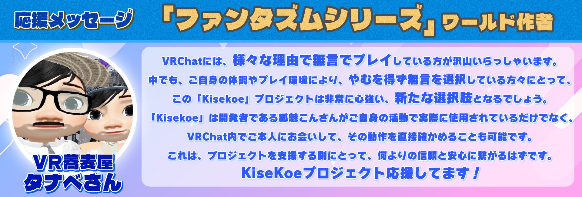 このプロジェクトは、VRChatで活動する「無言勢」に声を届けることを目指しています。