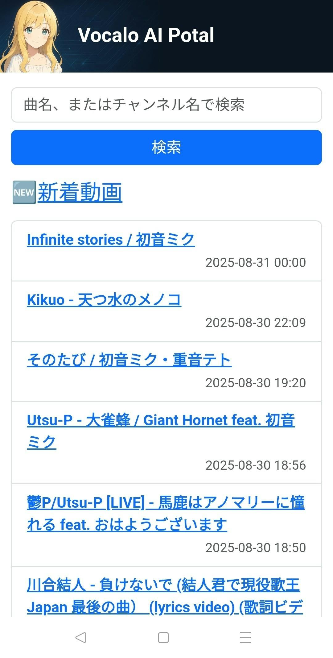 収集できている楽曲はまだ一部だけで、数万曲すべてをカバーできているわけではありません。そのため漏れが多いと思いますが、もし「この曲も載せてほしい!」「このチャンネルを優先して!」というリクエストがあれば、ぜひコメントで教えてください。