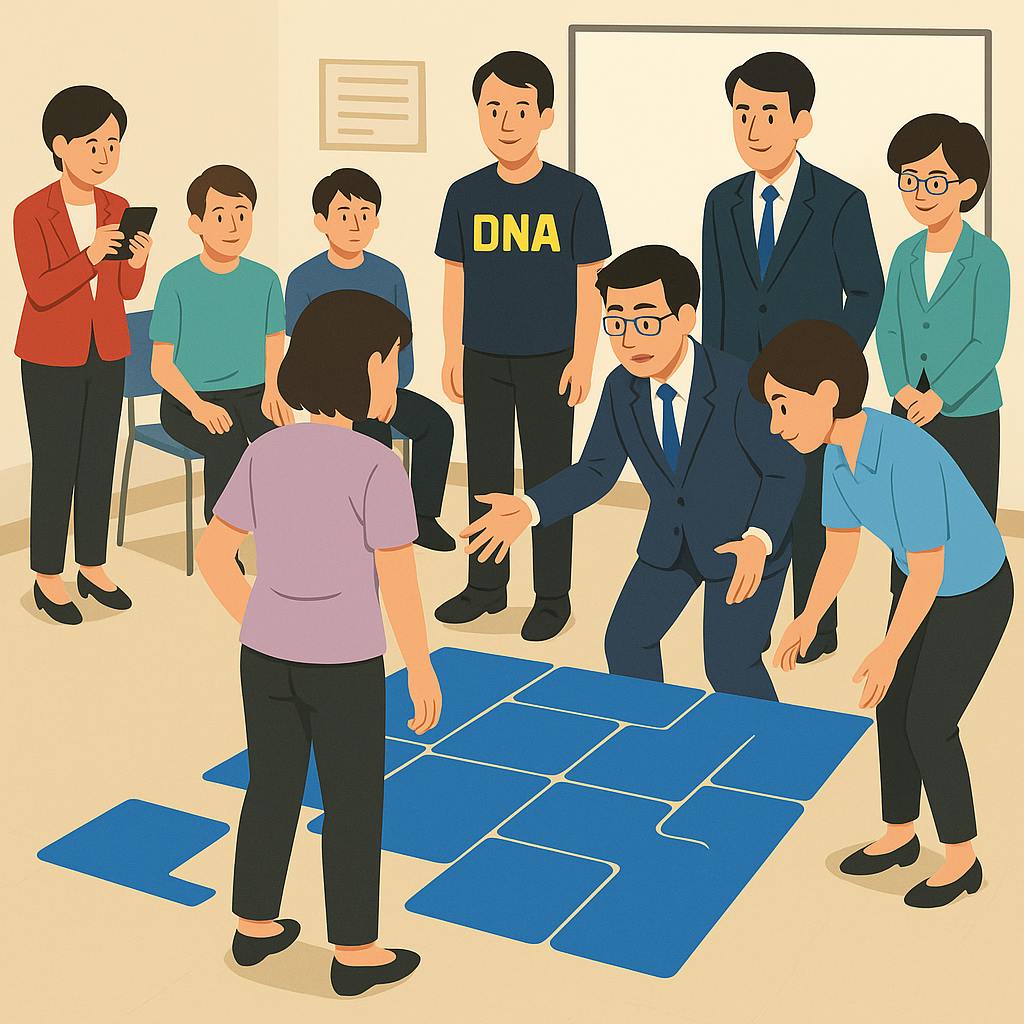 企業の新人研修やワークショップで、非言語コミュニケーションや協力体験を促すアイスブレイクとして使えます。