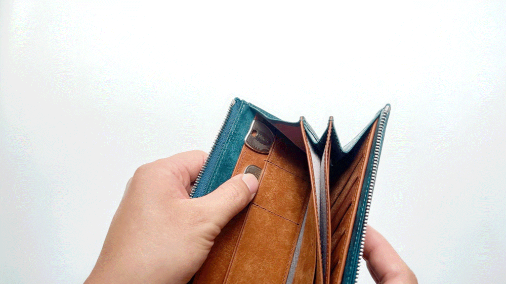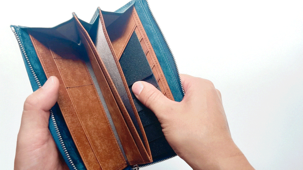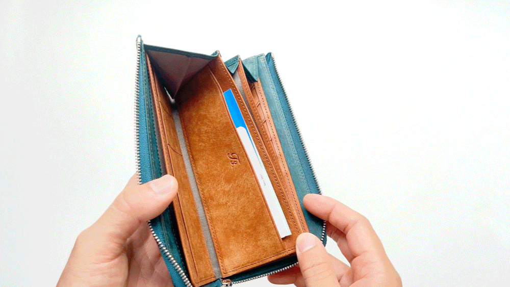 ファスナーがないフルオープンの小銭入れは、出し入れの際に「小銭入れのファスナーを開閉する」という所作がないため、スマートな会計が可能です。