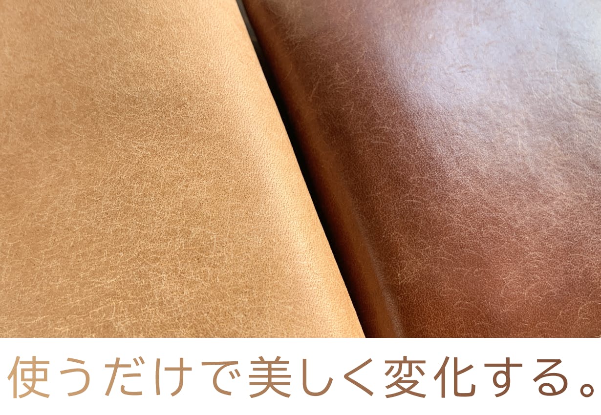 鞣し工程でしっかりとオイルを含んでいるためクリームなどを塗る必要もなく、初心者の方でも育てやすい素材です。
