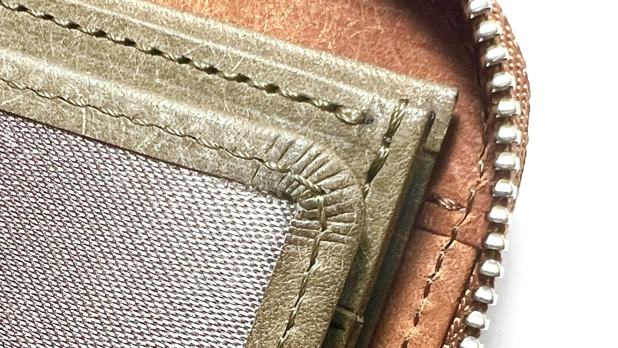 昨今では価格を抑えるために裏地や芯材を使用しない製品が多く見受けられますが、革だけで仕立てる場合は革の厚みの調整や床面(革の裏面)の適切な処理をしないと、型崩れや汚れ、毛羽立ちなどのトラブルが多くなってしまいます。