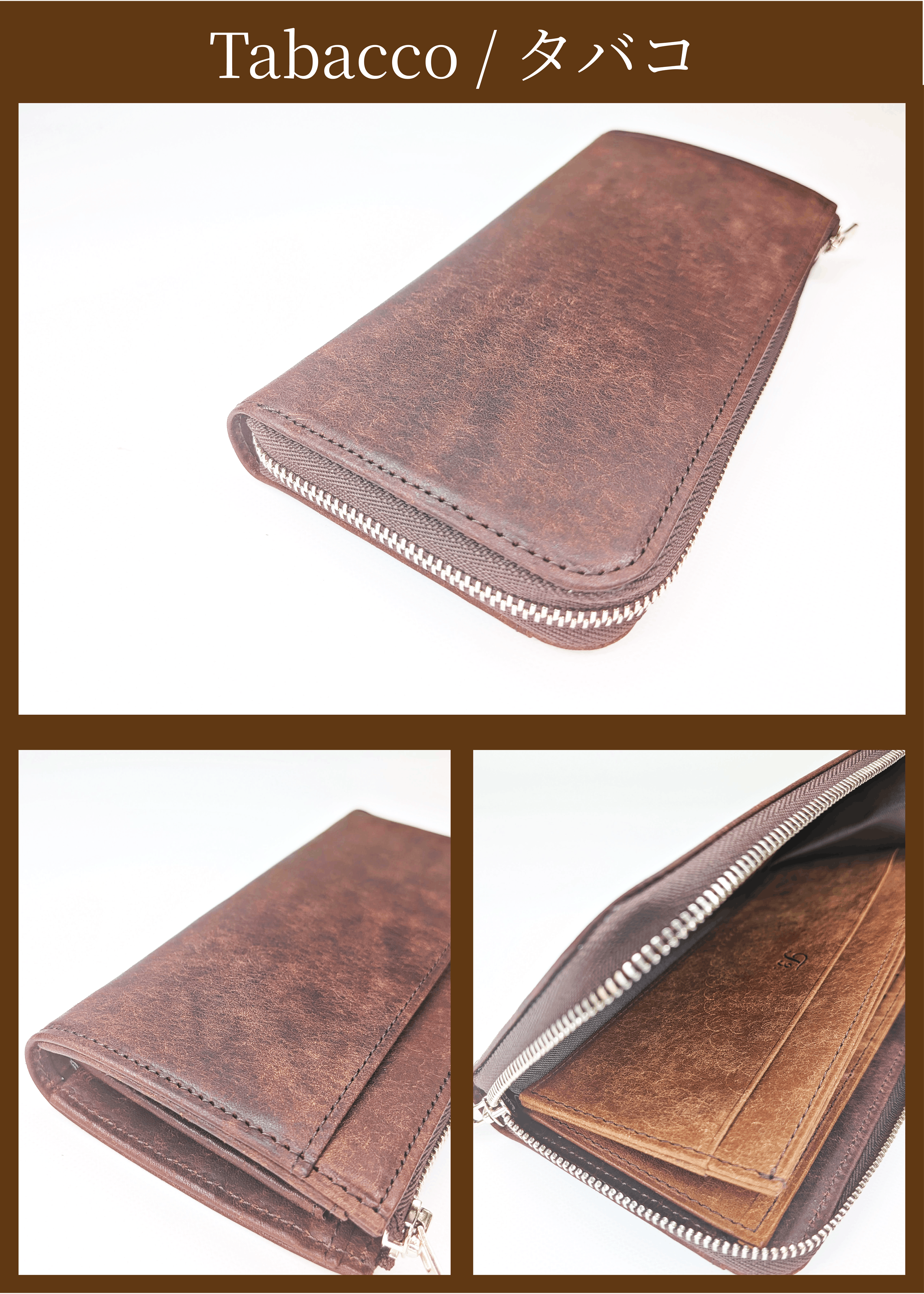植物性タンニンと牛脂を用いたバケッタ製法により鞣されているため、オイルが抜けにくく経年変化により色が濃くなり艶が出てきます。