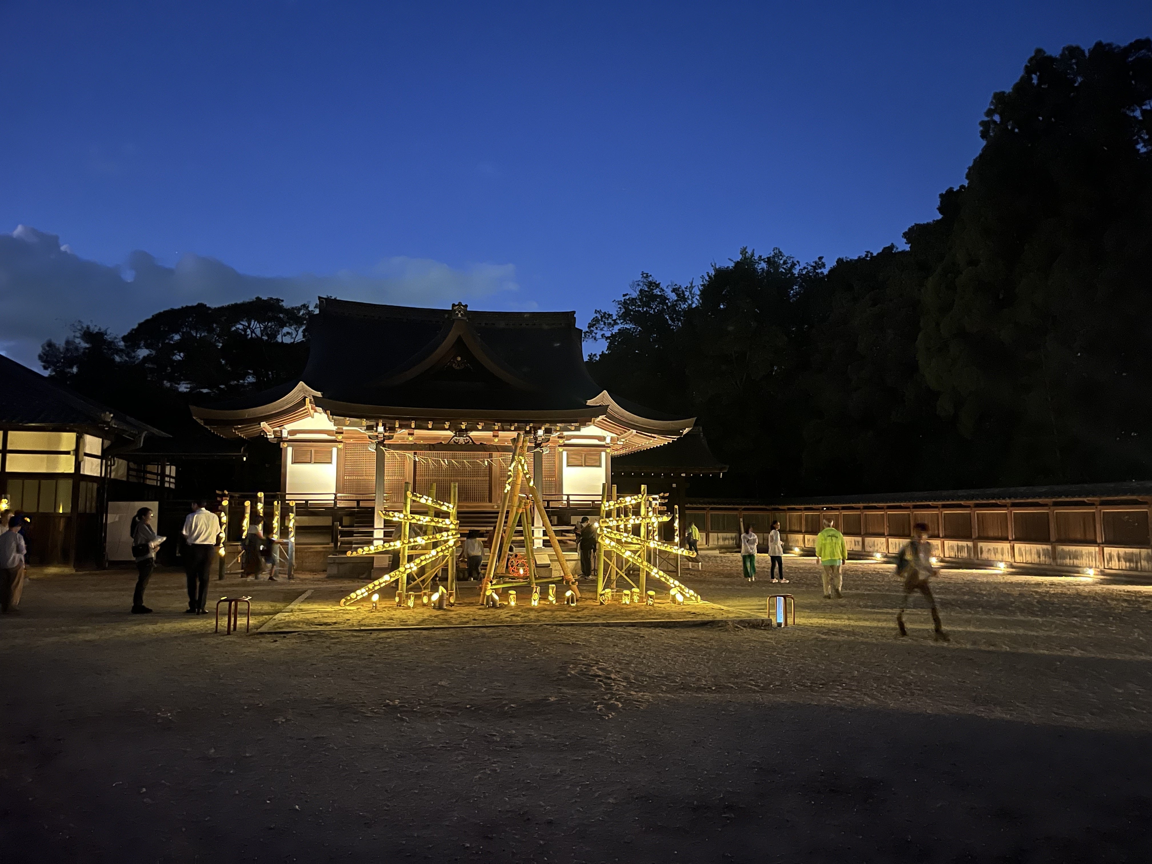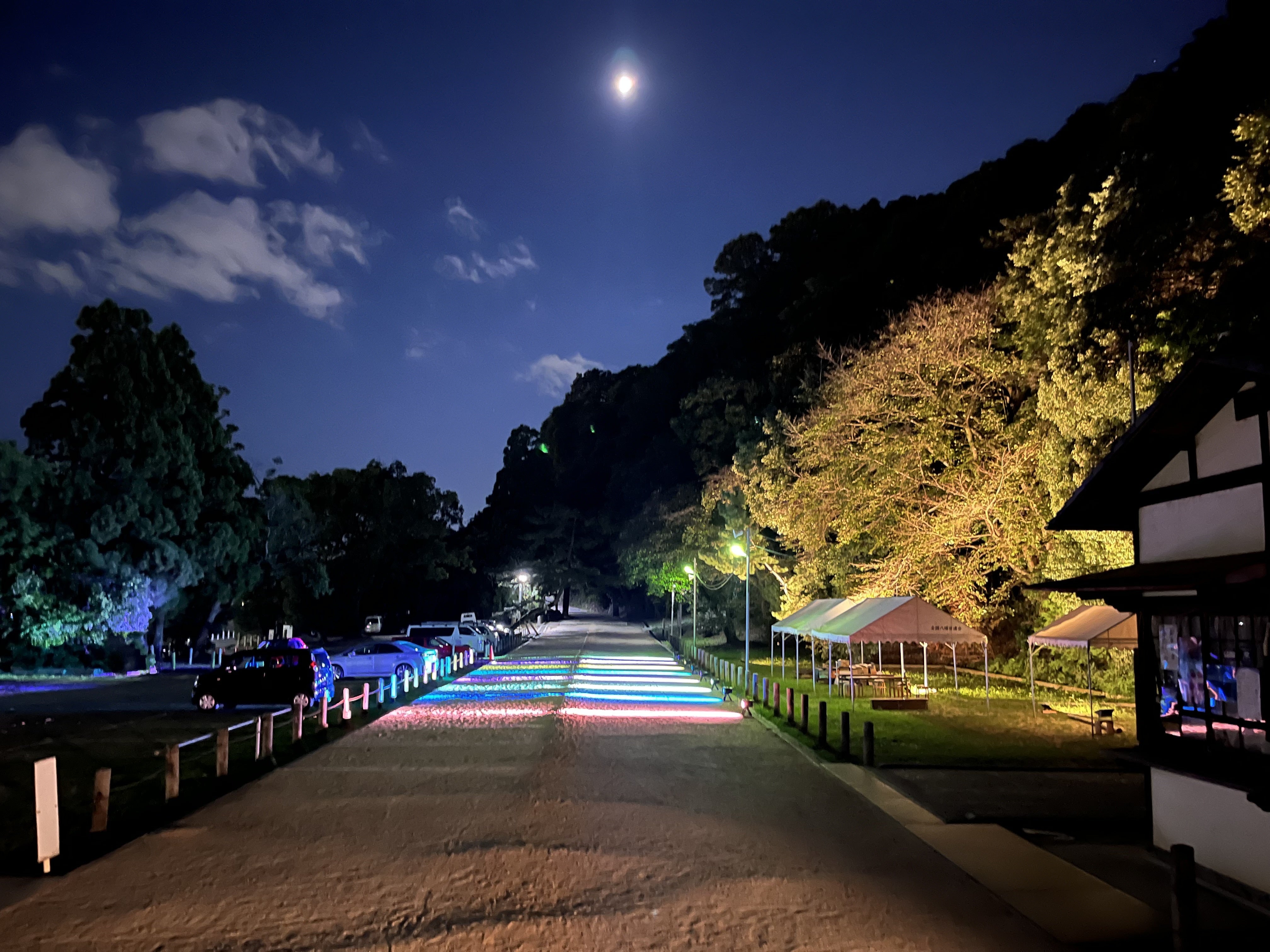 会場をみんなで作って、夜にはそれを光らすライトアップを行ったり、八幡の野菜と八幡で飲食店のコラボレーションのダイニングでは、みんなで一緒に食べる事を楽しむ。