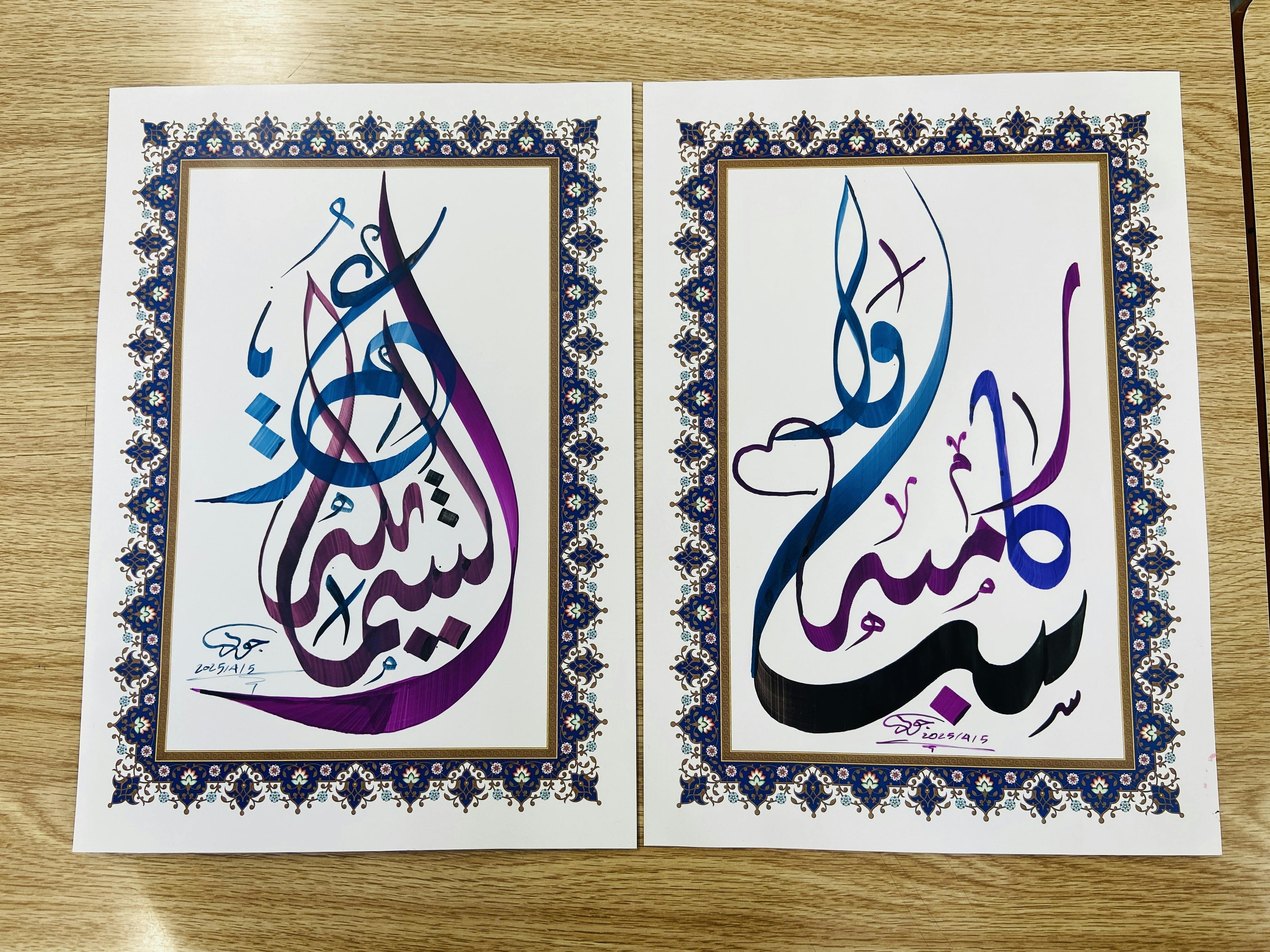 続いて「アラビア書道」です。東京にあるトルコのモスクでアラビア書道体験ができました。木でできた筆にカラフルな墨をつけて書きます。