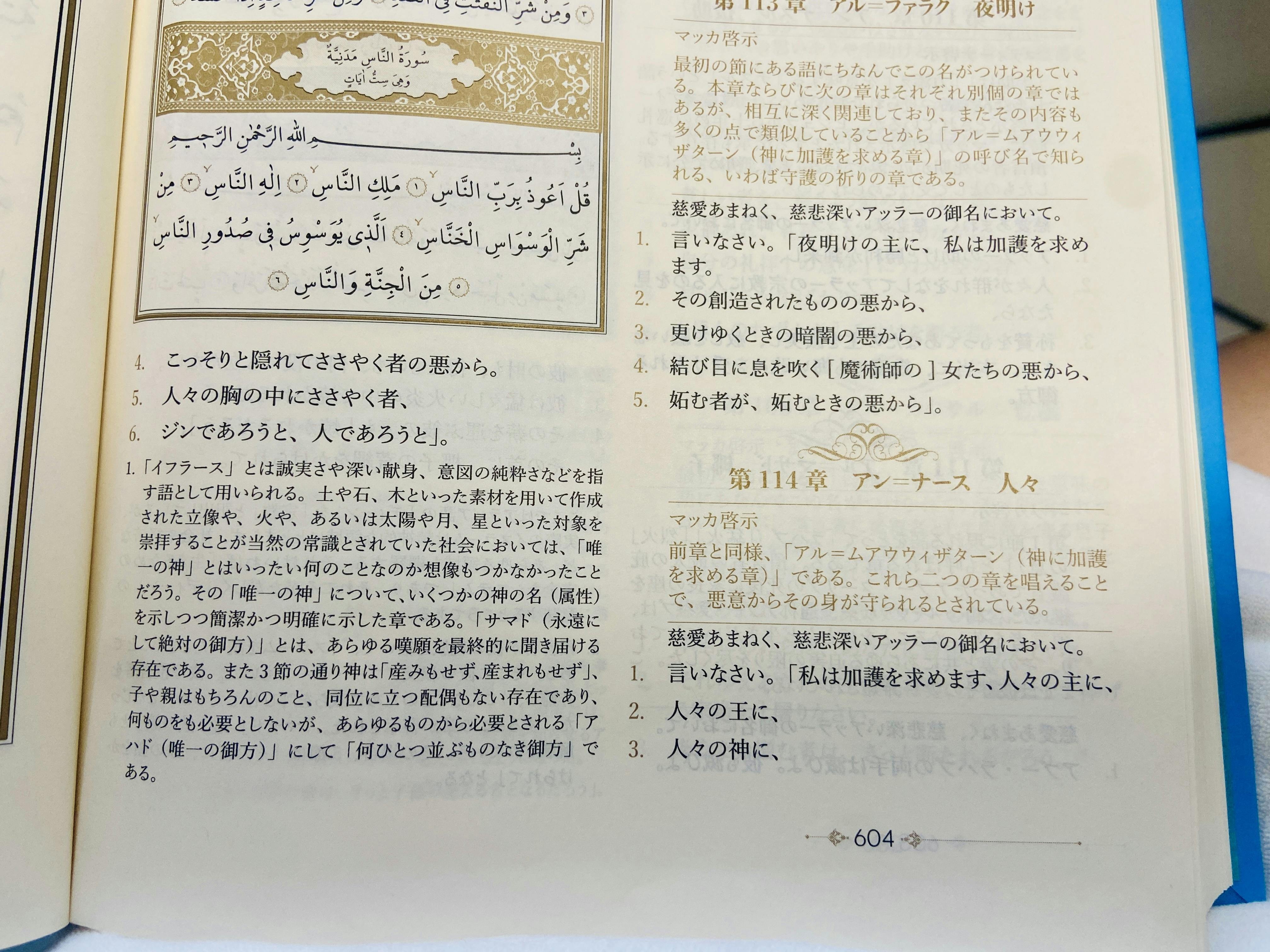 2025/09/03 13:30クルアーンとの出会いヨルダン留学に向けて、アラビア語と並行して英語も勉強しています。学生時代は“受験英語”止まりで、挨拶くらいしかできなかったので、1ヶ月ほど前からオンライン英会話「ネイティブキャンプ」を始めました。世界中の先生がいる中で、私は中東出身の先生を選んでいます。英語を学びながら、その国の文化も知りたいからです。覚えてみようと思ったきっかけクルアーン自体は以前から知っていました。「知ってるな」くらいで、覚えようとかは思っていなかったのですが、よく話すカタールの先生が「まずはクルアーンを読んでみなさい」と勧めてくれたことで、はじめて挑戦してみようと思いました。はじめて覚えた章「アンナース」最初に覚えたのは、クルアーンの最終章「アンナース」。神に守りをお願いし、人間やジン(見えない存在)からの悪い囁きから救ってもらうためのお祈りの章です。学んでいくうちに、私は「神はサラーム(平和)」という考え方にしっくりきました。イスラム教は厳しい面ばかりが注目されますが、実際には“平和に根差した宗教”で、平和であるために自分を見つめて良い心を持ち、行動することが大切だと感じました。覚えるのは短い章でも難しく、私は3時間ほどかかりました(笑)。クルアーンは歌うようにリズムに乗せて読むのが特徴で、発音や文字も独特です。でも先生は私の努力を喜んでくれて、“You are the worth of the world. I respect you from my heart.”(あなたは世界の宝です。心から尊敬します)と言ってくれました。次の挑戦「アル・ファーティハ」次は、毎日の礼拝でも唱えられる「アル・ファーティハ」に挑戦します。また進捗を報告しますね! もっと見る