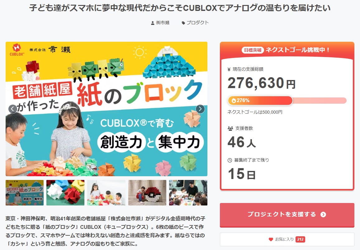 2026/01/16 12:00皆さまの温かいご支援により、CUBLOX®のクラウドファンディングは目標金額を達成することができました。応援してくださったすべての皆さまに心より感謝申し上げます。しかし、CUBLOX®の挑戦はここで終わりではありません!本プロジェクトはいよいよラストスパートを迎えます。残り2週間、ネクストゴールへの挑戦をスタートします。CUBLOX®は、遊びながら学び、学びながら創造力を育み成長する子どもたちの「できた!」という笑顔を、もっと増やしたい。その体験こそが、これからの時代を生きる力につながっていくと私たちは考えています。より多くの方に気軽に応援して頂き、そして、実際に手に取って感じて頂きたいという想いから、新たにCUBLOX®4個(2色セット)1,000円のリターン品を追加致しました。引き続き、皆さまと一緒にCUBLOX®を育てていけたら嬉しいです。最後まで応援・ご支援のほど、どうぞよろしくお願いいたします。株式会社市瀬 もっと見る