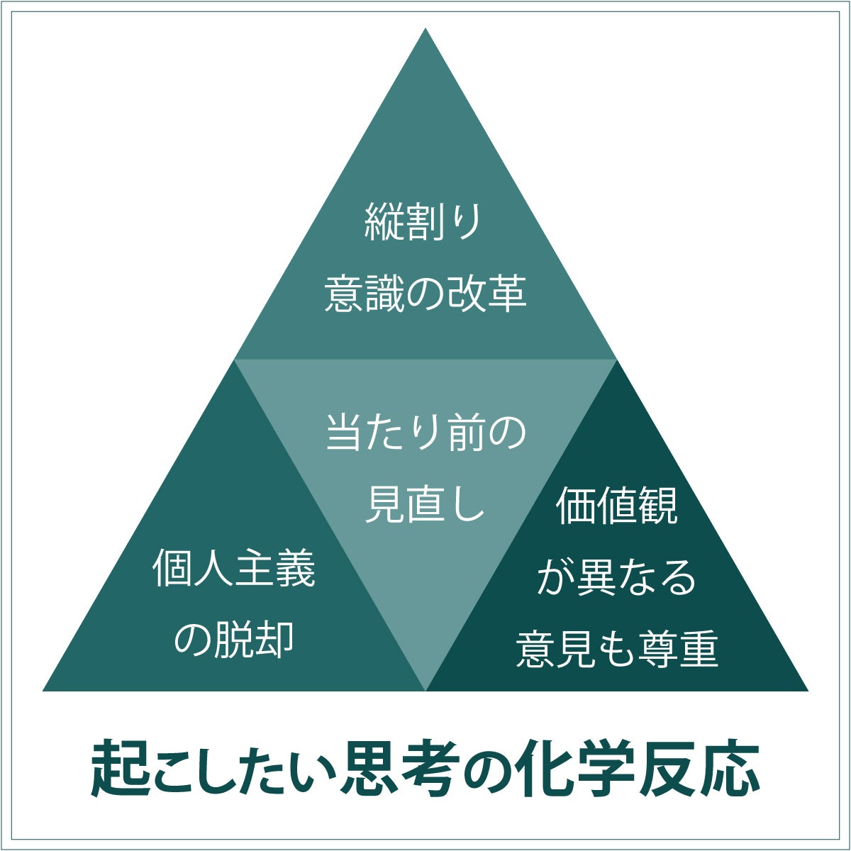 私たちは、異なる視点を持つ人々が交流し、「思考の化学反応」を起こすことで、この課題を乗り越えたいと考えています。