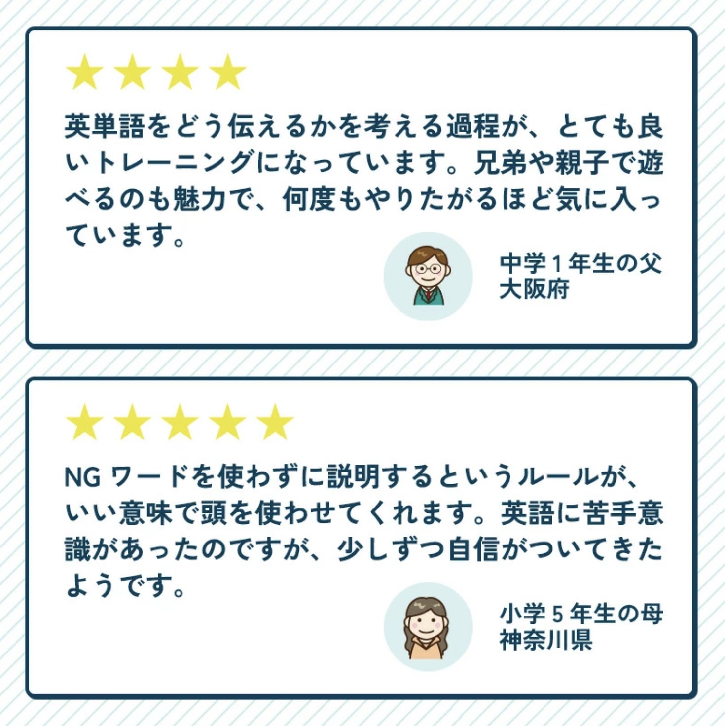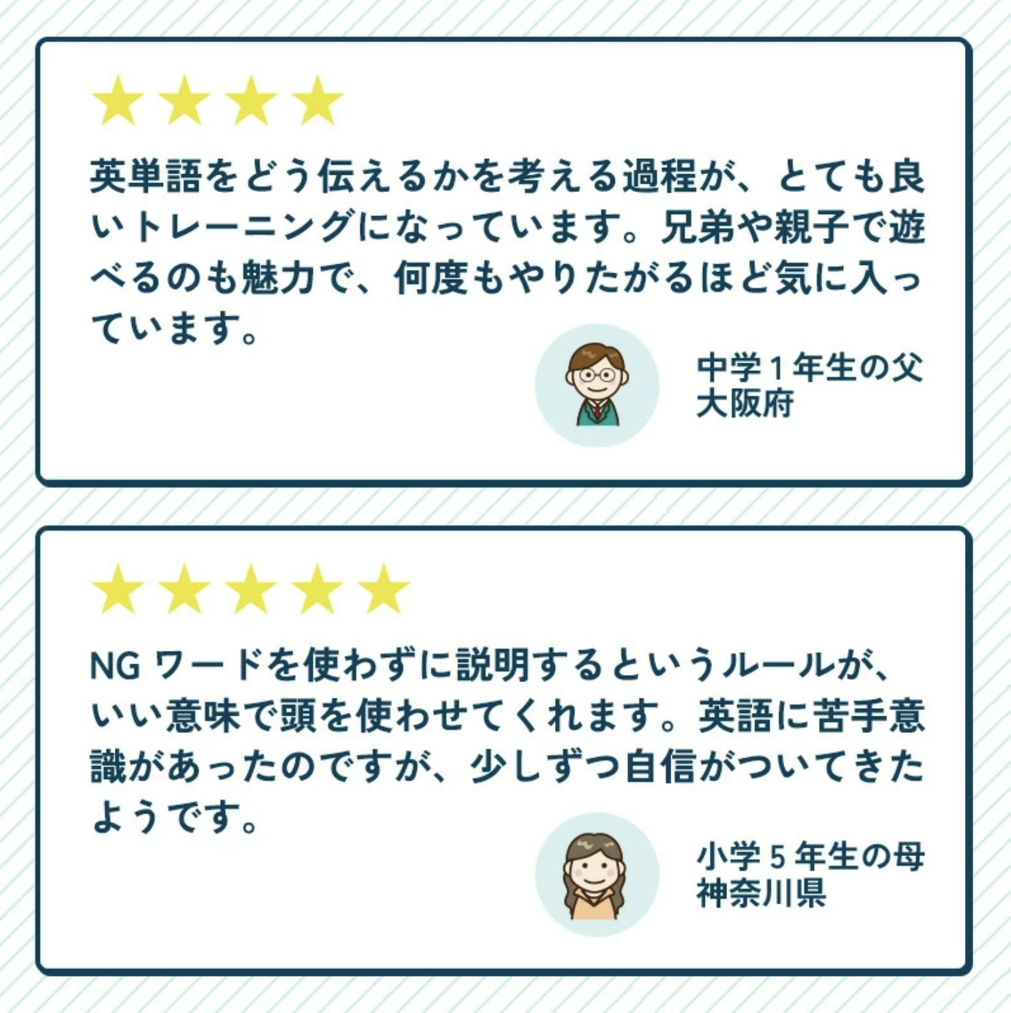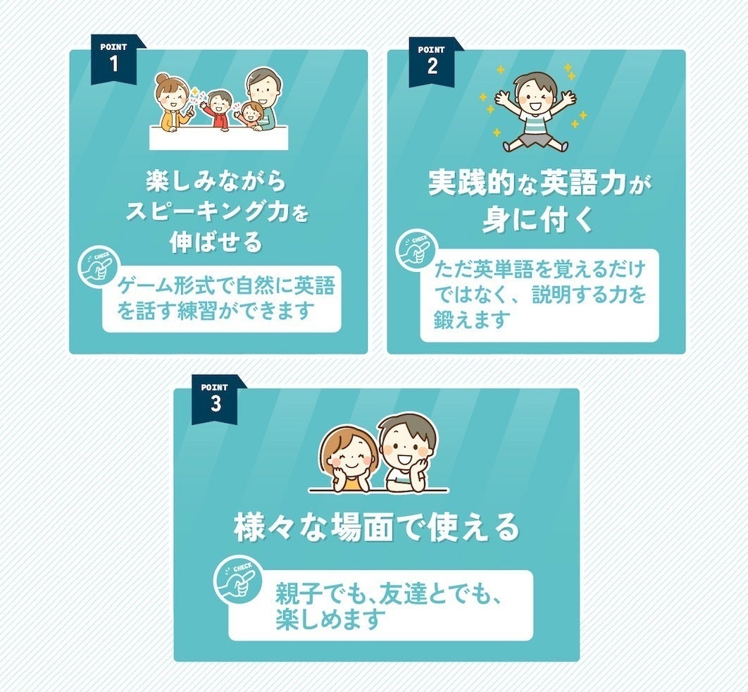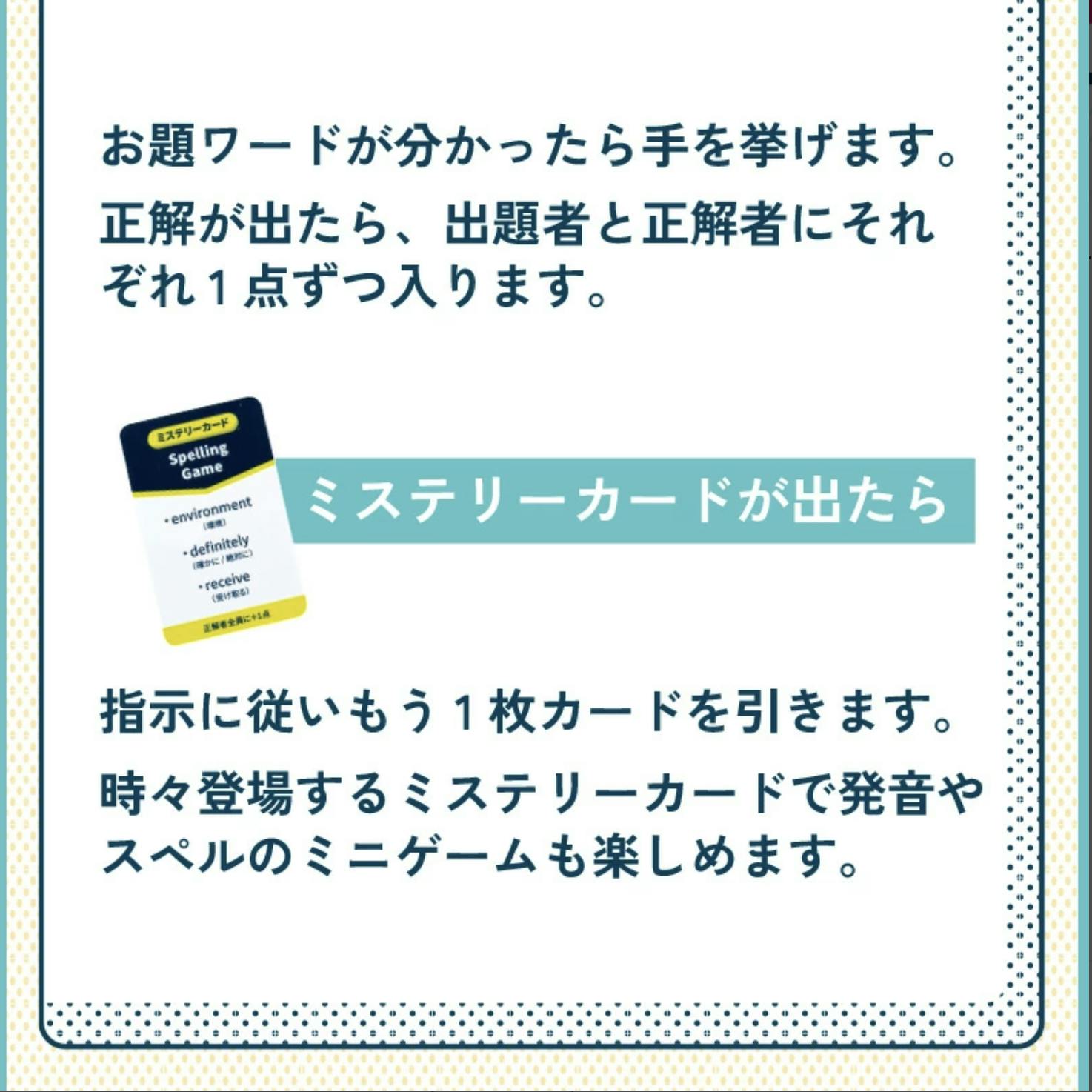 私たちナシゴエイゴの製作陣は、英語は「正解を覚える」ものではなく、「伝えたい気持ちをどう表すか」を楽しむものだと思っています。このゲームを通して、子どもも大人も「伝えるって面白い!」と感じられる時間を増やしたいといった願いを込めて作りました。