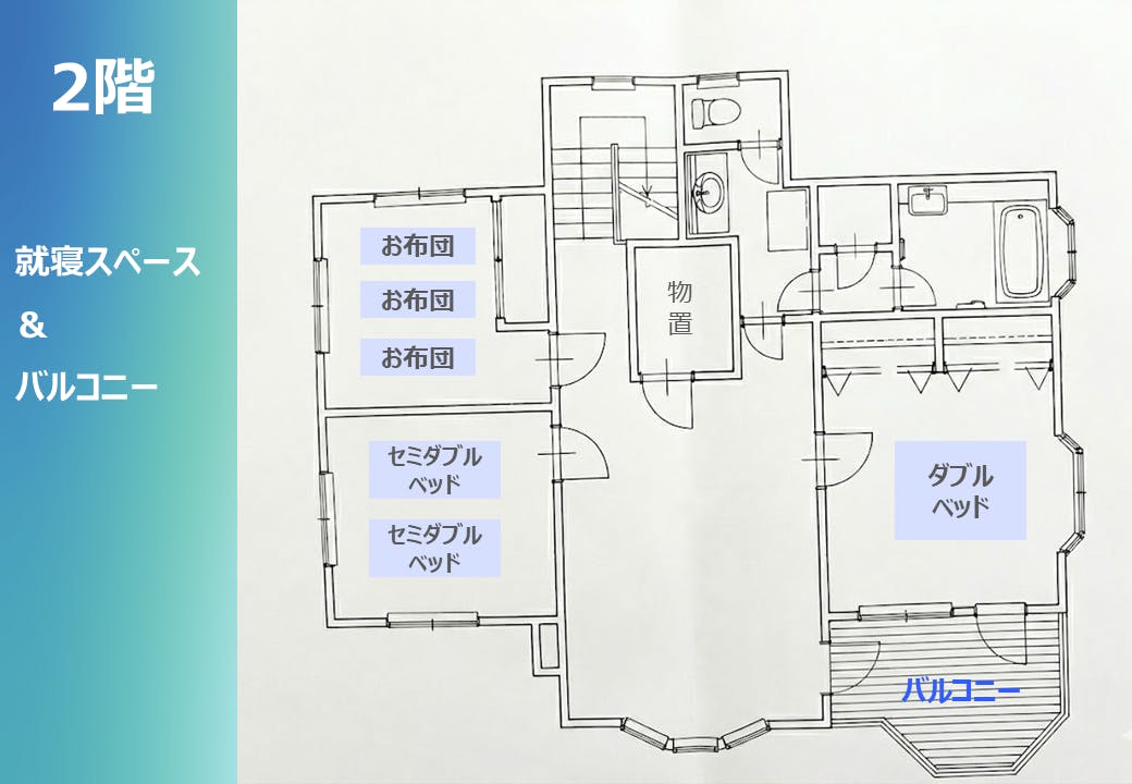 2階建て4LDKの別荘を丸々貸切で利用できます。