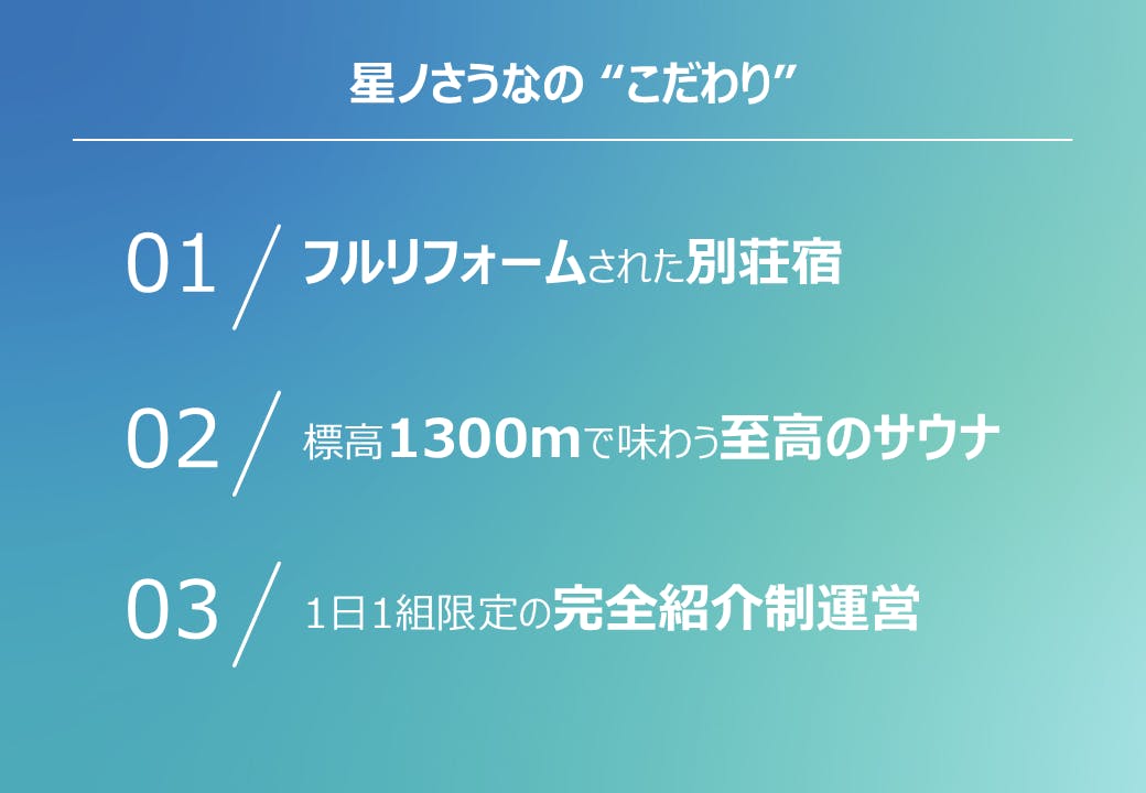まずは、星ノさうな ”3つのこだわり” をご紹介させて下さい!