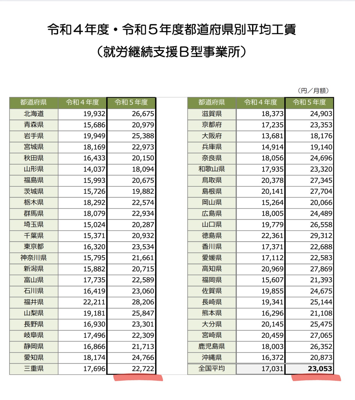全国平均は23,053円/月ですが、三重県の平均は22,722円/月と、さらに下回っています。