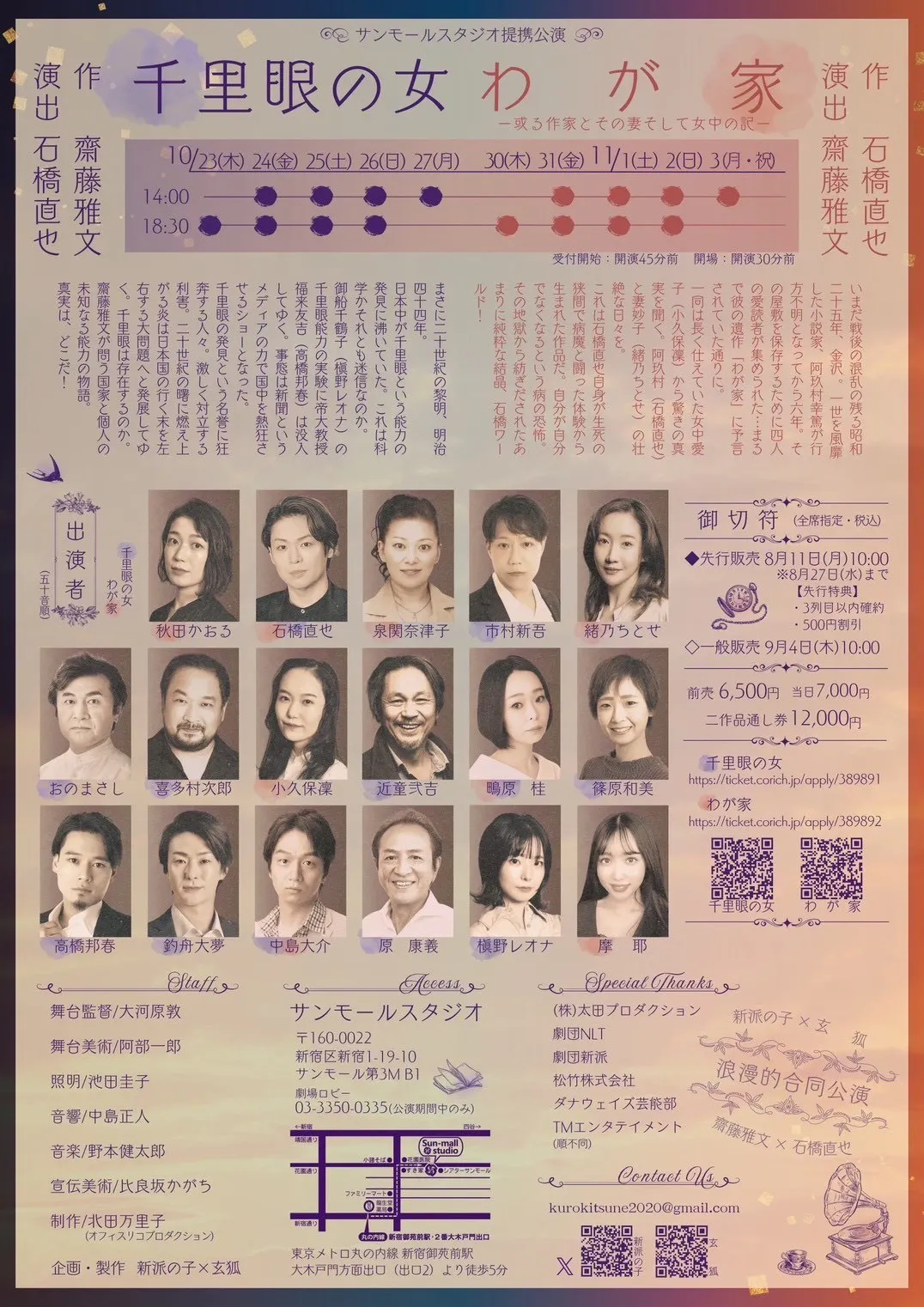 9月中旬 「千里眼の女」「わが家」顔寄せと舞台稽古開始