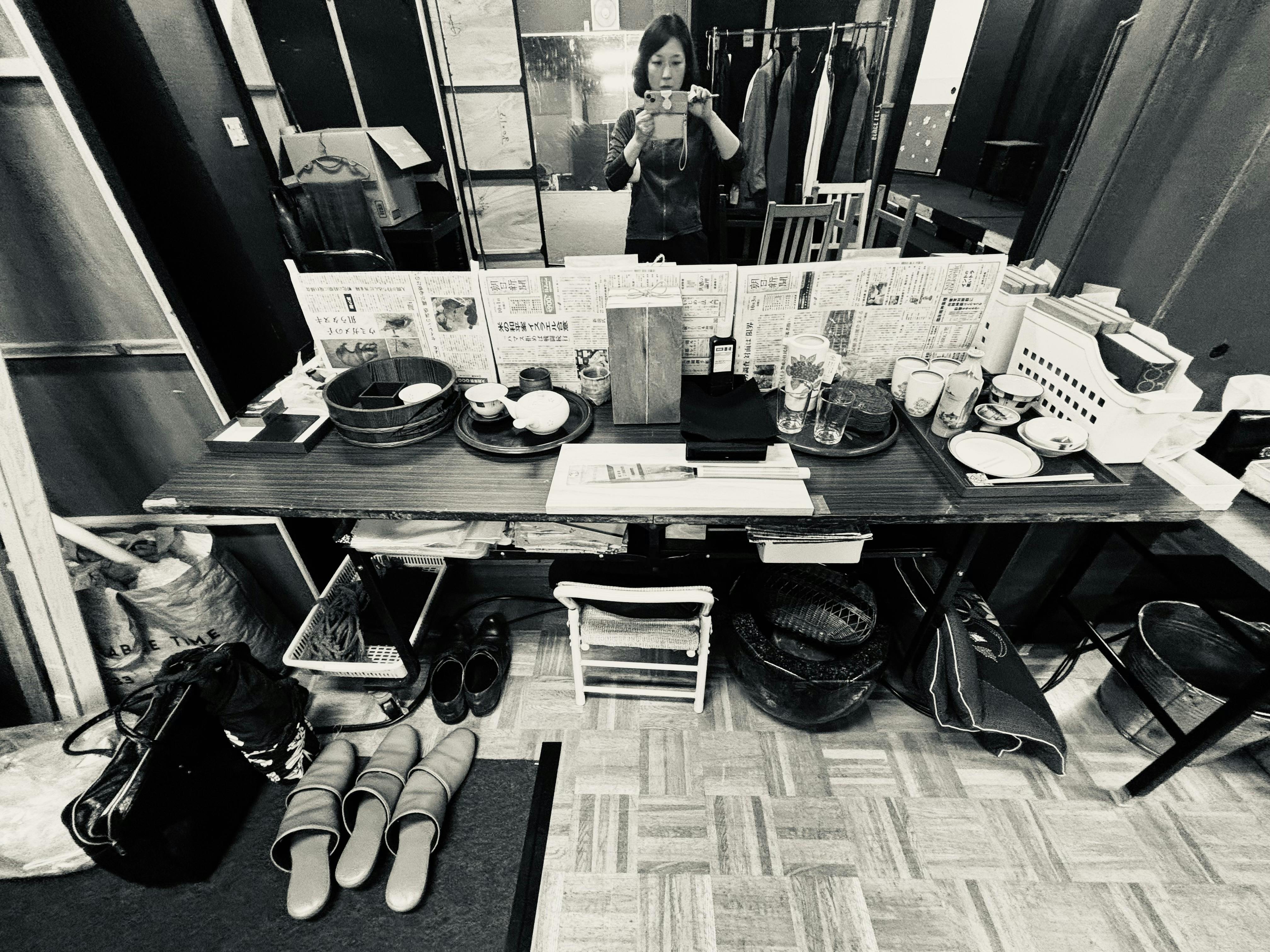 こんにちは!玄狐の秋田かおるです!今日は一日作業日!時代ものを揃えるのはとても楽しい作業の一つです。昔の物は丁寧な作りだなぁ。と、いつも感心します。ただ、ひとつひとつ本物を買い揃えるのは至難の業。今回は実家にも行き、昭和の物を物色。笑皆様にもご協力賜り、持ち寄っていただいたり、無い物は手作りしております!現代では捨てるであろう物が、舞台では宝になります。お衣裳も早拵え用にチクチク。幕があくまでは役と作業をいったりきたり。役者もスタッフさながらです。あともう6日で小屋入り。ラストスパートです!!