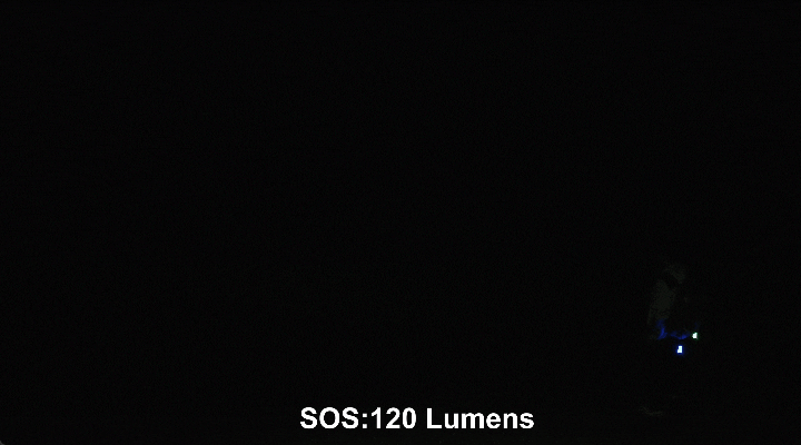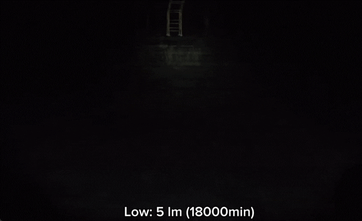 最大照射距離458mを誇るTURBOモードは、最大1分間、高輝度で広範囲を照らすことができます。その後は加熱やバッテリーへの負担を抑えるため、自動的に600lmへ光量が調整されますが、600lmでも非常に明るく、暗闇をしっかり照らすには十分な性能です。