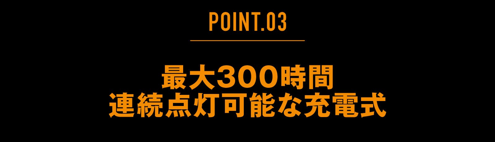 A. フル充電してLOWモードで使うと、連続で300時間、約12.5日も連続使用が可能です。
