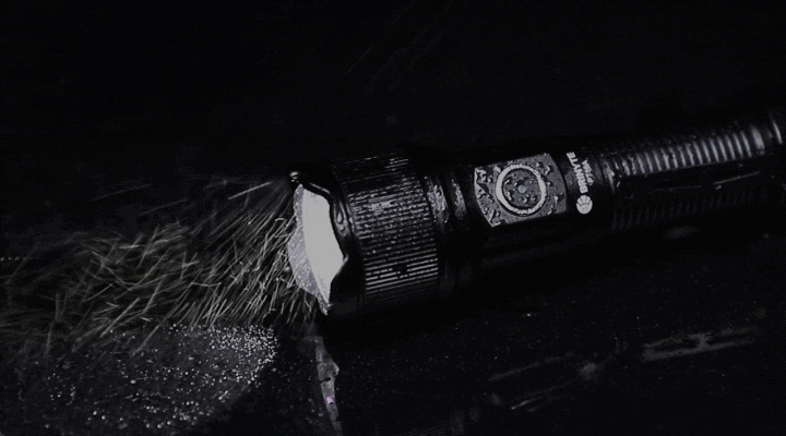 A. 明るさは 3000ルーメン、照射距離は458mで車のヘッドライトより明るいです。 Luminus SFT70 LED を採用し、 過酷な環境でも動作します。またIP68の防水防塵機能を有し、1mの高さからの落下にも耐えられます。 雨、水没の被害に遭っても問題ありません。