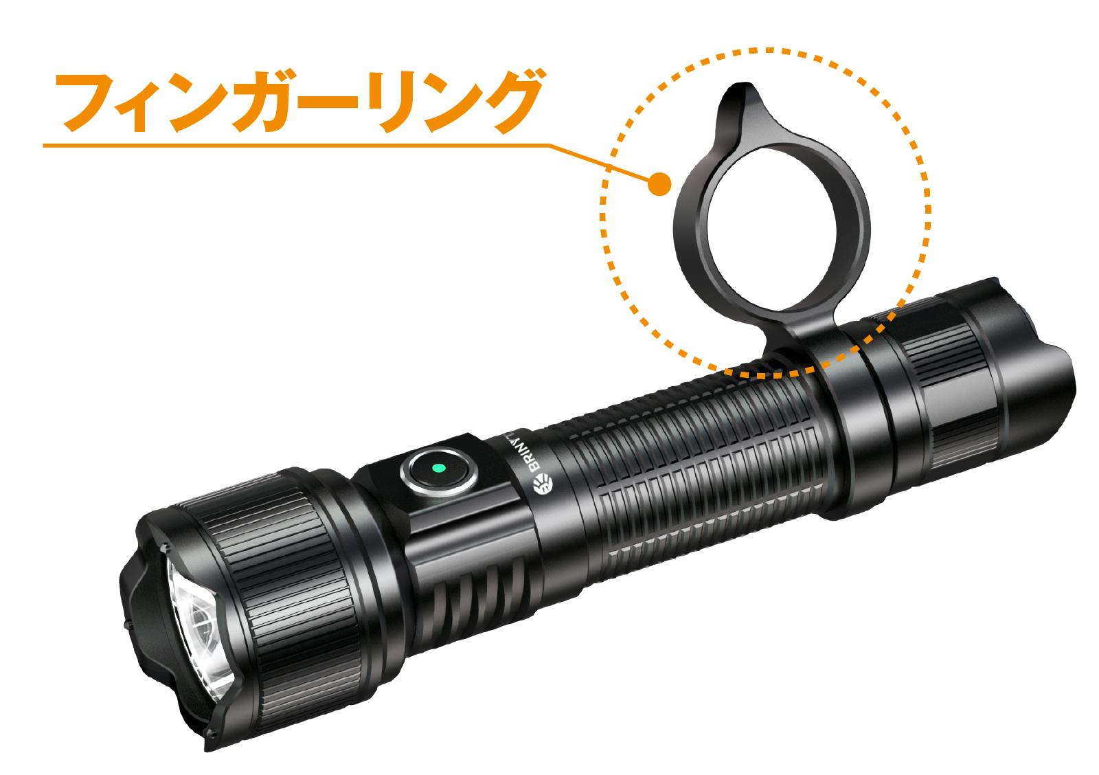 複雑な環境下で片手操作が求められるシーンを想定し、フィンガーリングによって片手でも確実な操作と保持が可能に。さらに、ワンクリックで起動する「ストロボ」や「SOSモード」も搭載。緊急時に素早く信号を送れる設計で、ユーザーの生存率を高める役割を担います。