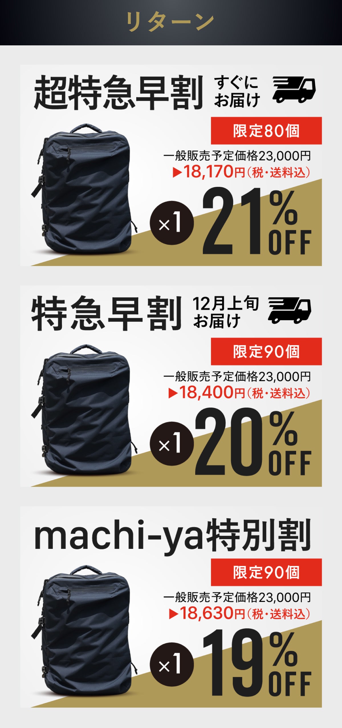 2025/12/21 19:30こんばんは。airoffプロジェクトチームです。これまで本当に多くのご支援をいただき、心より感謝申し上げます。airoffプロジェクトは、本日をもって終了、残り時間は5時間となりました。私たちが目指したのは、「特別な日に使うバッグ」ではなく、毎日の生活で、確実に役に立つバッグです。・天気を気にせず使える・季節を問わず快適・毎日持ち出してもストレスがない派手な主張はありませんが、使うほどに「これでよかった」と感じていただける設計です。プロジェクトが終了すると、この条件・この価格でご案内できる機会はいったん終了します。販売終了まで、残り5時間。ぜひこの機会をお見逃しなく。\プロジェクトはこちら/https://camp-fire.jp/projects/878614/view?openExternalBrowser=1airoff運営チーム一同 もっと見る