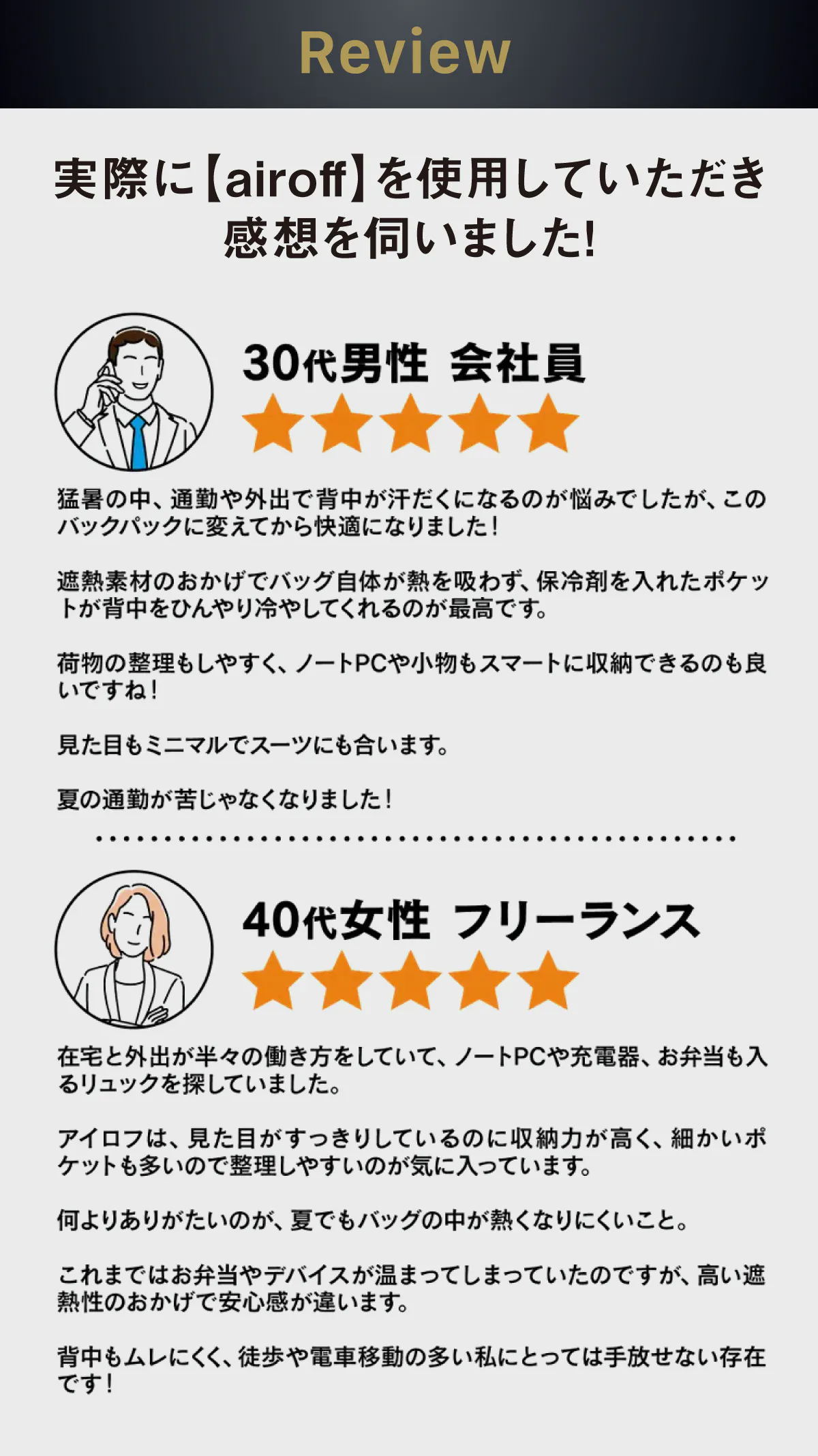 2025/12/19 19:30こんばんは。airoffプロジェクトチームです。ここまで本当に多くのご支援をいただき、心より感謝申し上げます。プロジェクト終了まで、残り2日となりました。airoffは、「特別なシーンのためではなく、毎日の生活に自然と馴染み、役に立つバッグとして生まれました。」・雨の日に中身を気にしなくていい・暑い日も、背中の不快感を減らせる・寒い季節には、じんわり温かく使える派手さはないけれど、使うほどに良さを実感できるバッグです。「少し気になっている」「いいなとは思っている」その感覚がある方にとって、今が最後のタイミングになります。プロジェクトが終われば、この条件・この価格で手に入る機会は一区切りです。お見逃しなく!\プロジェクトはこちら/https://camp-fire.jp/projects/878614/view?openExternalBrowser=1airoff運営チーム一同 もっと見る