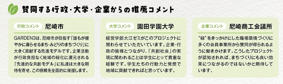 GARDEN3の核となる「地域・企業・学生の三位一体の共創」を実現するため、