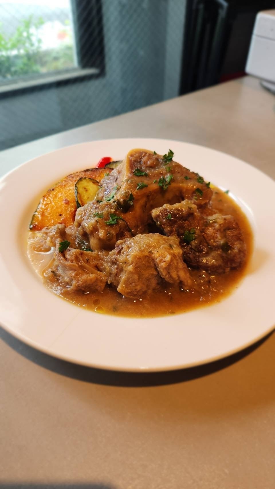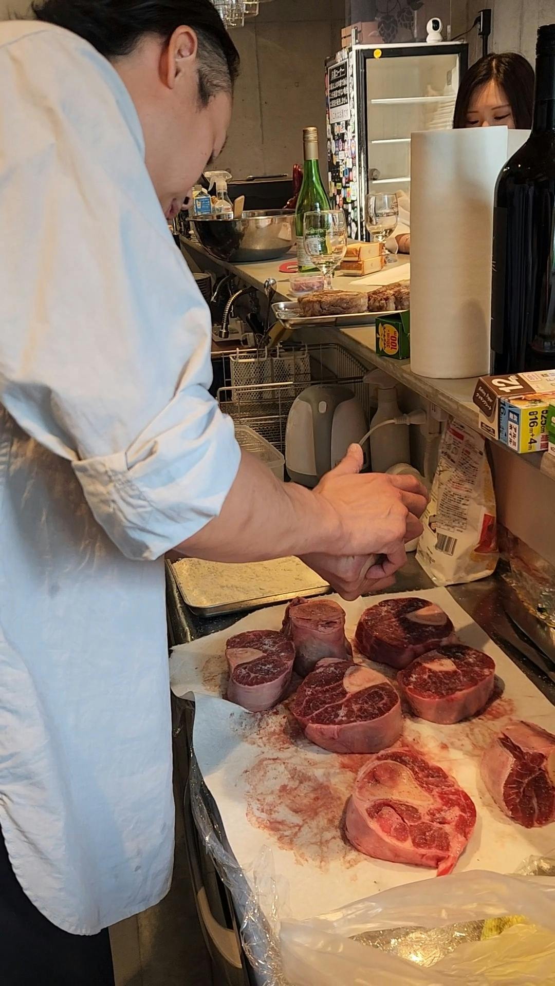 「看板メニューは、イタリア伝統料理【オッソブーコ 骨付き仔牛スネ肉の煮込み】。心も体も温まる自慢の一皿です。」