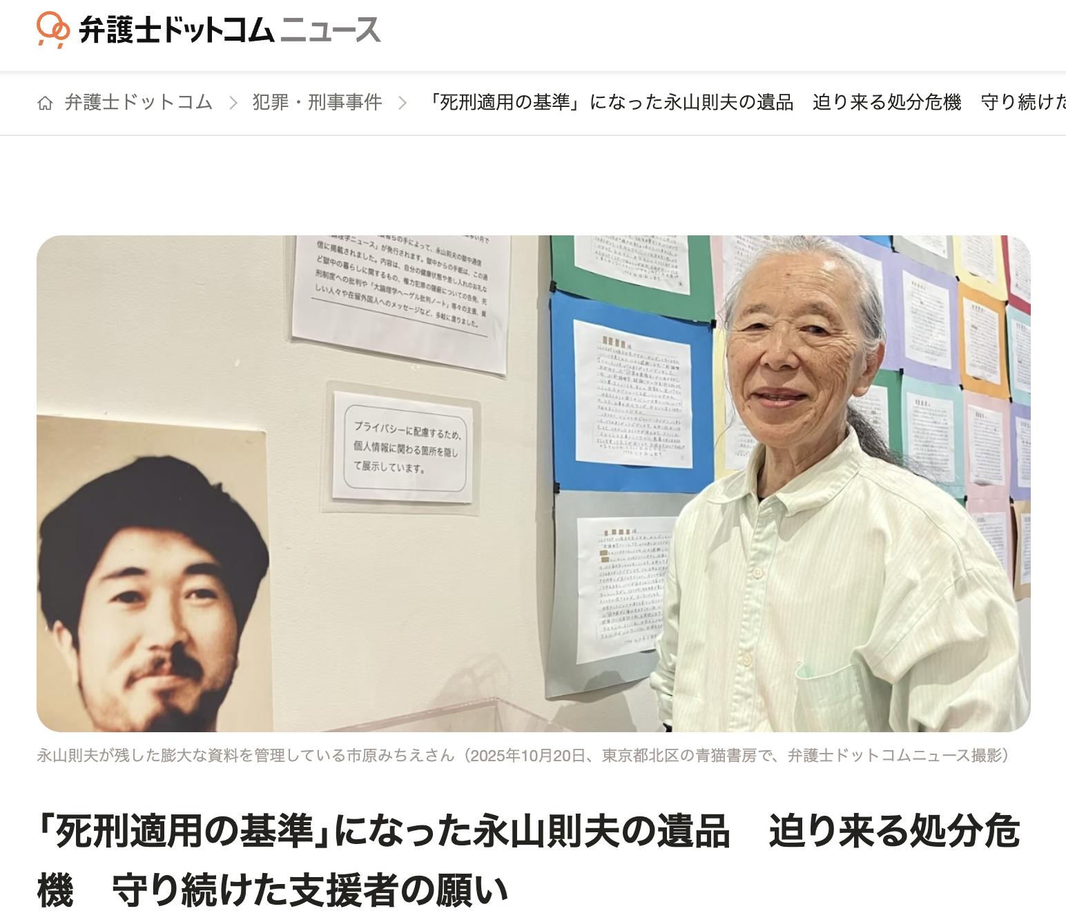 東京新聞10月30日の朝刊に記事を掲載いただきました。ぜひご覧ください。「永山則夫元死刑囚の遺品は家1軒分に増え…支援者個人の保管は限界 散逸の危機にひとりの弁護士が腹をくくった」"連続4人の射殺事件で死刑を執行され、収容中に書いた「無知の涙」などの文学作品で知られる永山則夫元死刑囚=執行時(48)=の遺品が散逸の危機にある。保管している支援者が高齢になり、遺品の行き先が決まっていないためだ。死刑制度の是非などを巡る議論の基礎となる資料を守ろうと、司法関係者らがネットのクラウドファンディング(CF)による資金集めなど、一歩を踏み出した。"(記事冒頭より)記事にも一部写真がありますが、膨大な箱につめられた資料を、1点ずつ下の写真のように電子化していく作業があります。引き続きご支援、情報拡散をお願いいたします!応援してください。