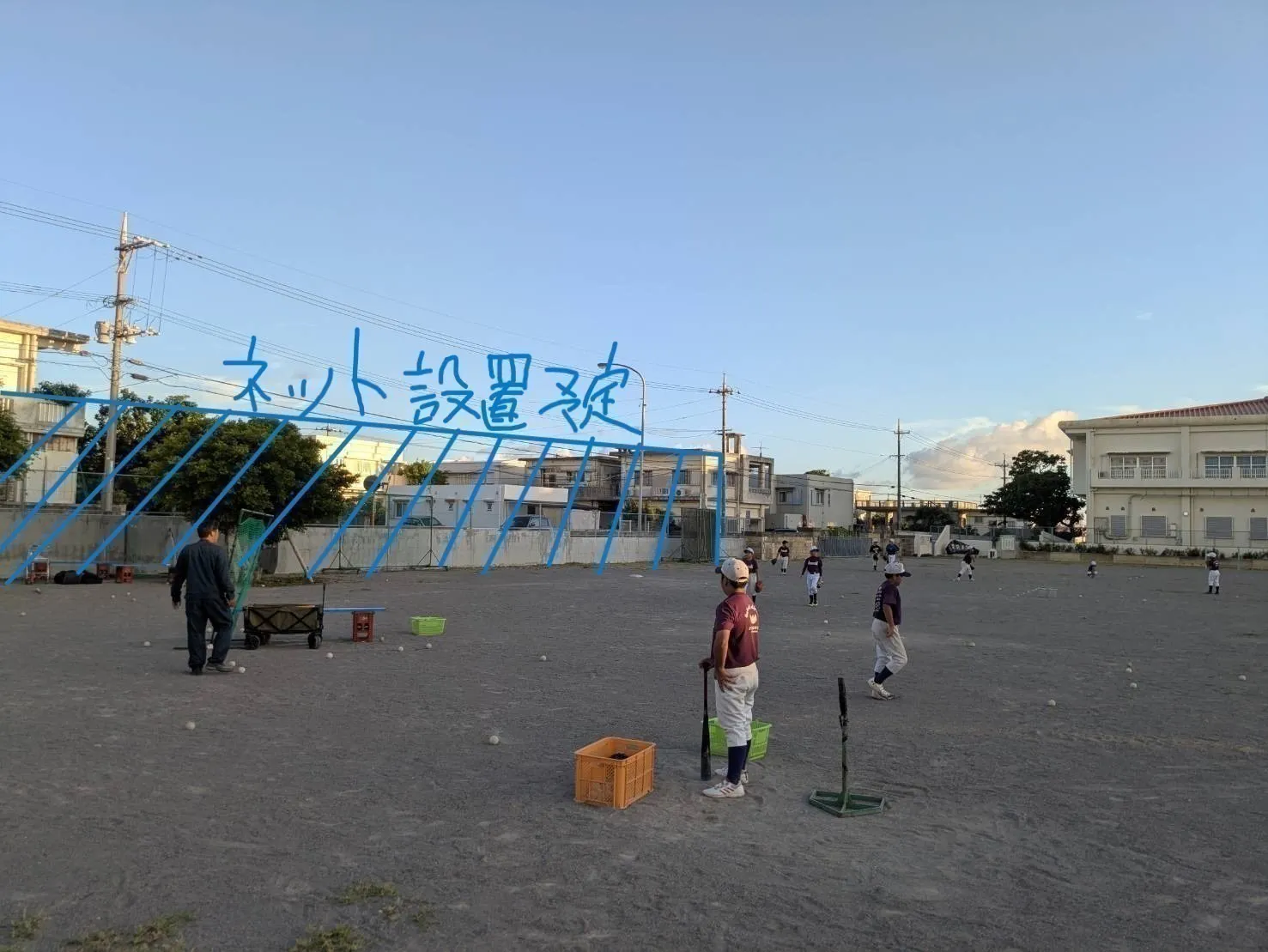 練習場が石垣小学校の校舎建替えに伴い幹線道路沿いに変わったことにより飛球対策用のネット設置が必要となりました。安心して子ども達が練習できる場所を提供することが私たちの願いです。