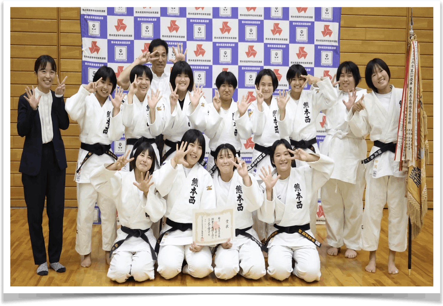 私たちは、熊本県立・熊本西高校女子柔道部です。2025年、団体戦・個人戦ともに数々の成果を挙げ、全国の舞台でも堂々と戦いました。
