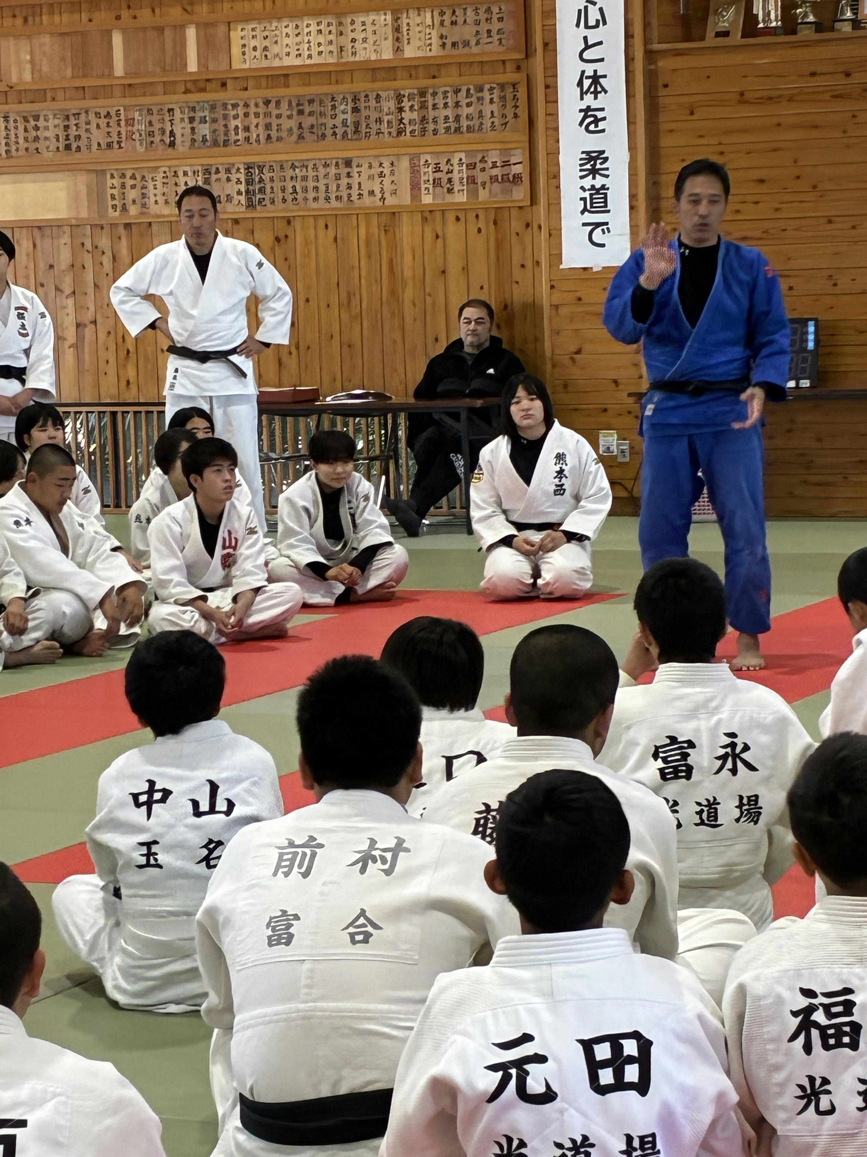 本日、荒木監督と熊本西高校女子柔道部は「熊本県冬季柔道教室」に参加し、県内の中学生に向けて寝技などの指導を行いました。中学生のまっすぐな姿勢や、技を吸収していくスピードに、私たち自身も大きな刺激を受け、多くの学びを得る一日となりました。今日得た気づきも力に変えながら、チーム一丸となって日本一を目指し、これからも努力を続けてまいります。