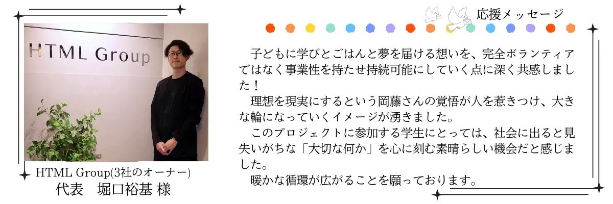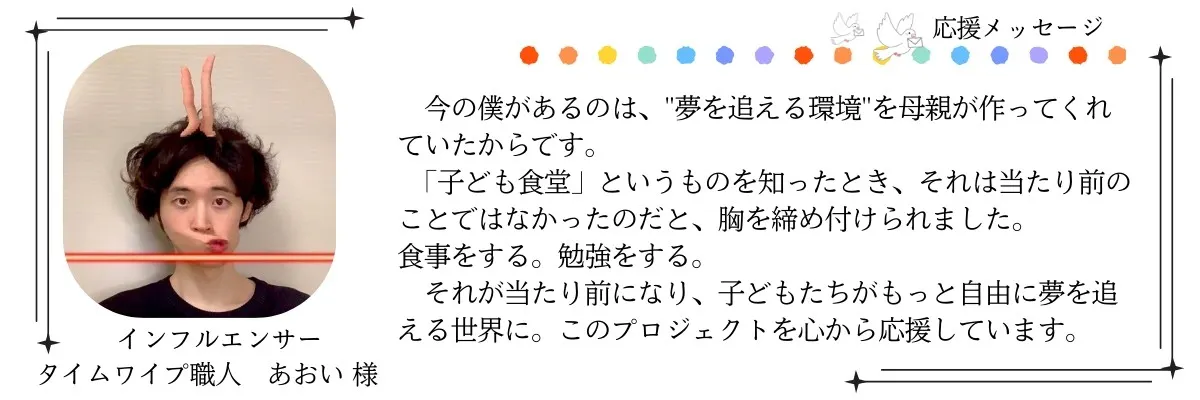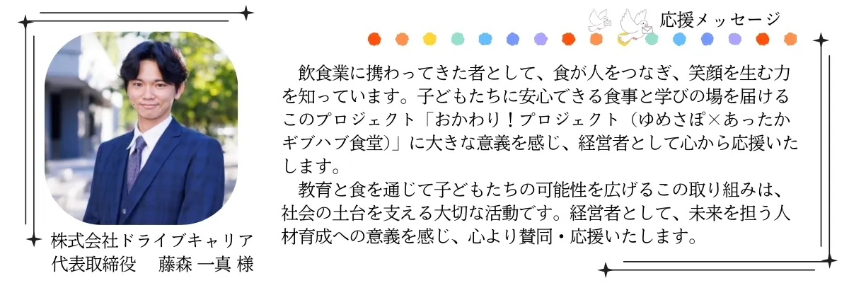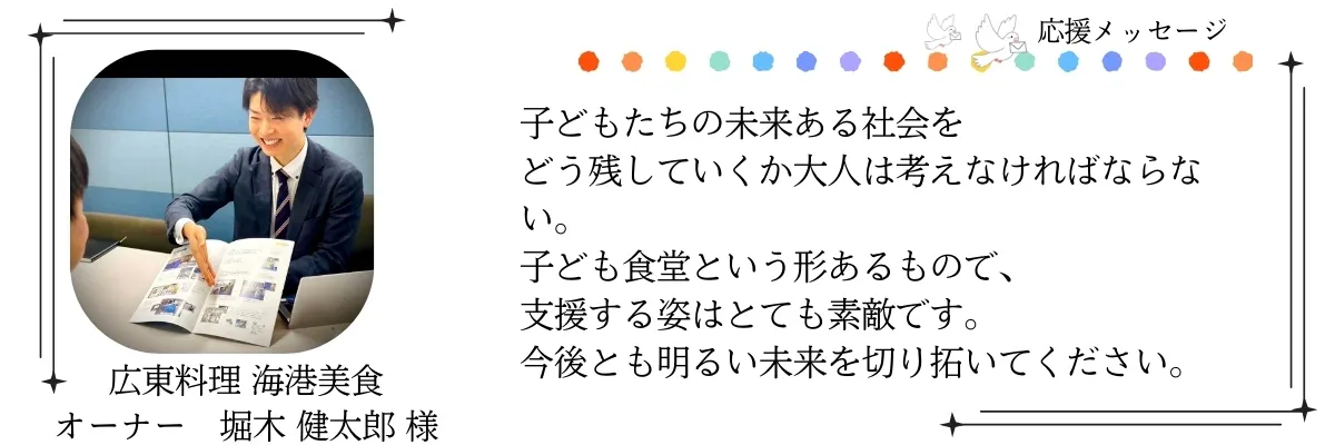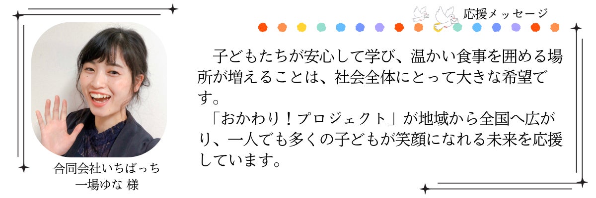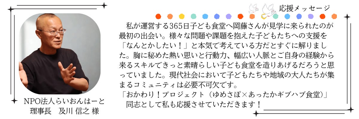 一人でも多くの子どもたちに温かなご飯と居場所を届けるために、さらに挑戦を続けたいです。