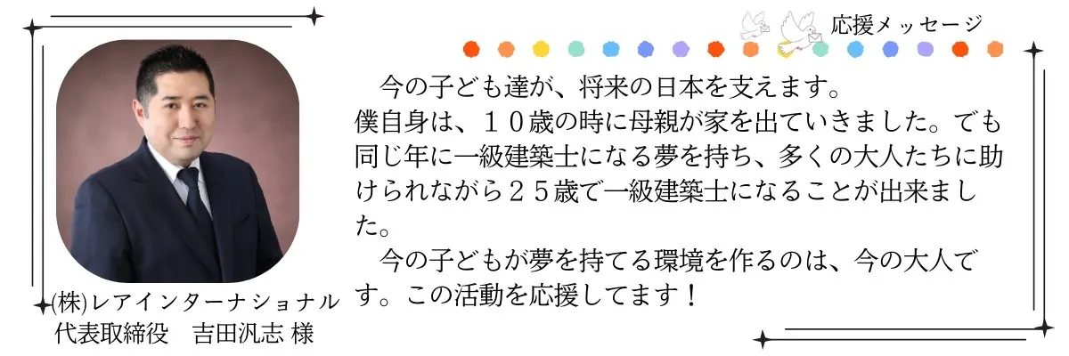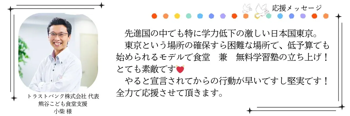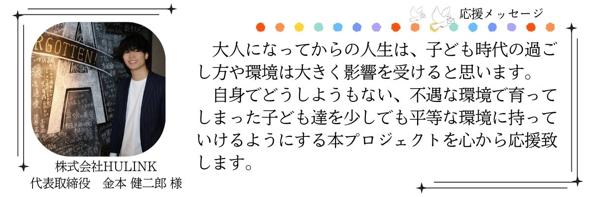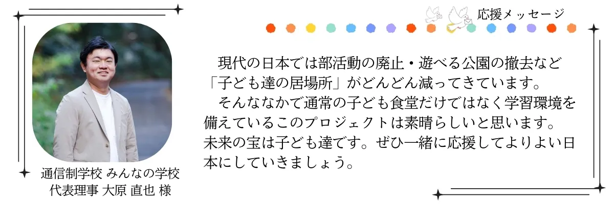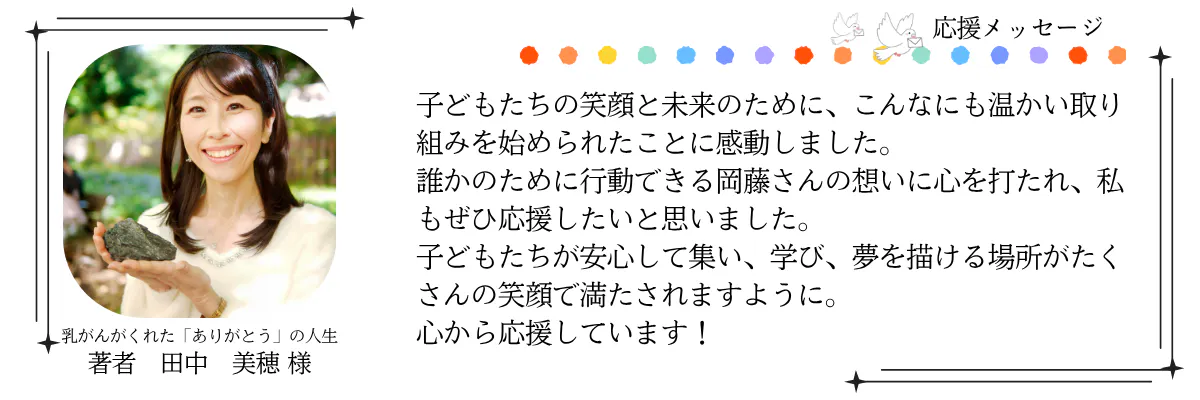 どうかあなたの温かい応援で、子どもたちの「居場所」を一緒につくっていただけますと幸いです。