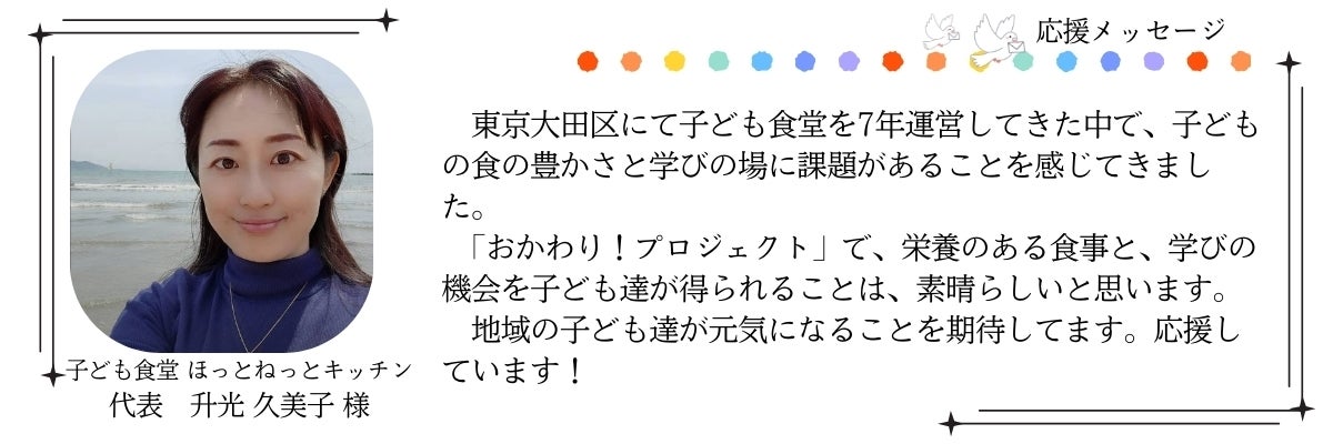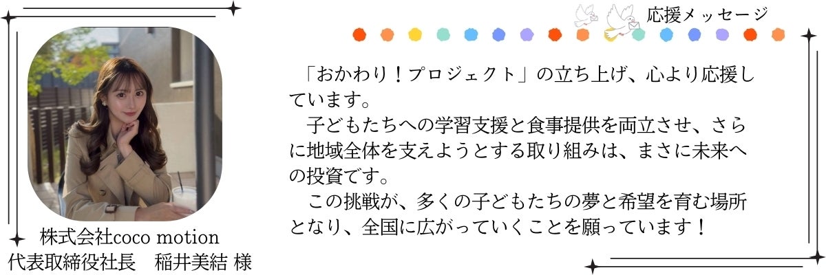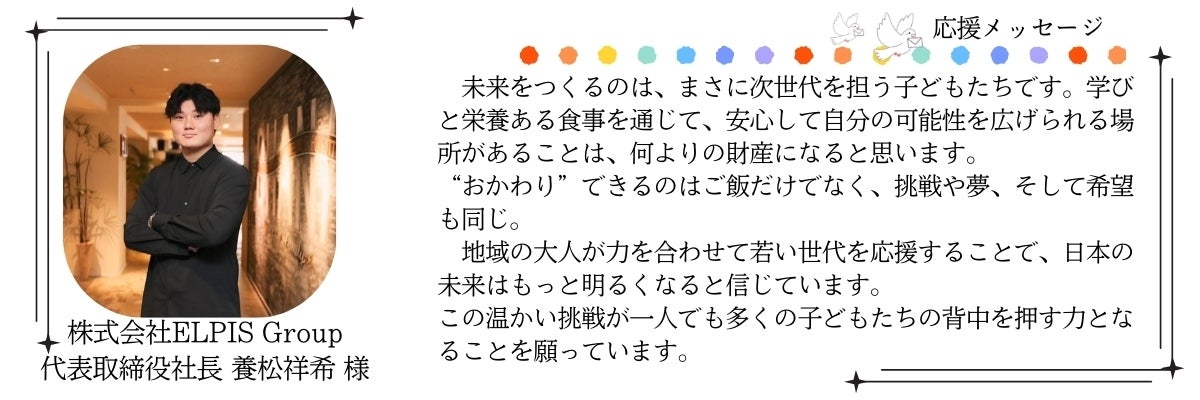 一人でも多くの子どもたちに温かなご飯と居場所を届けるために、さらに挑戦を続けたいです。