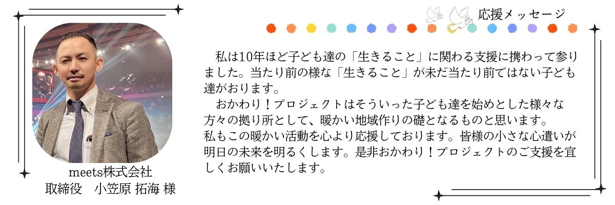 どうかあなたの温かい応援で、子どもたちの「居場所」を一緒につくっていただけますと幸いです。