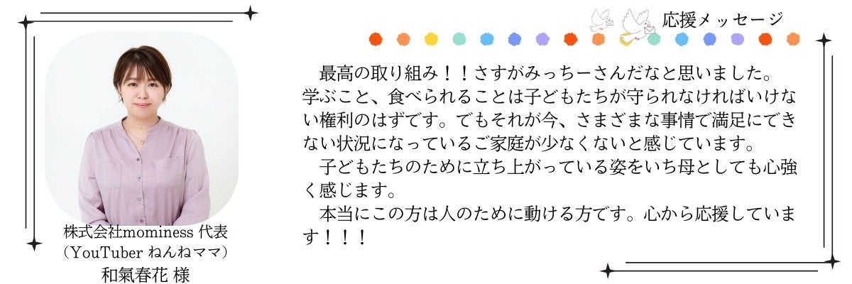 この挑戦の先に「飢える子どもをゼロにする」未来があると信じています。