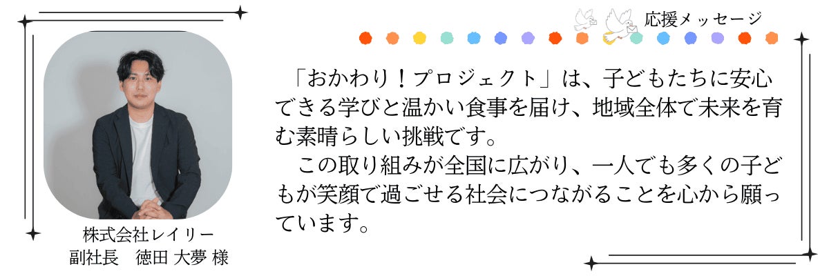 つまり「おかわり!プロジェクト」は、子どもには夢とごはんと居場所を、大人には安心と学びを、社会には課題解決の仕組みを届ける、未来型の子ども食堂です。